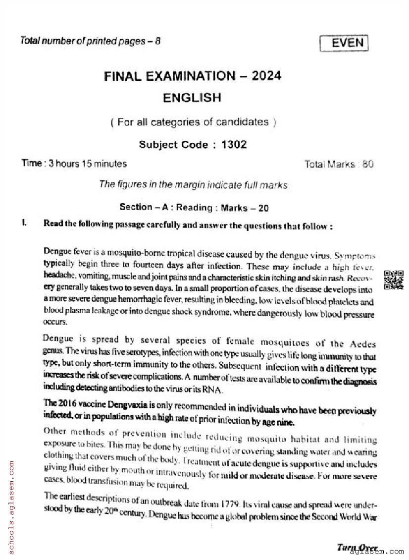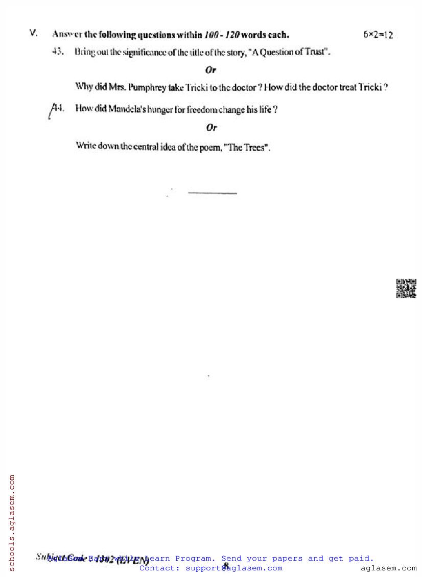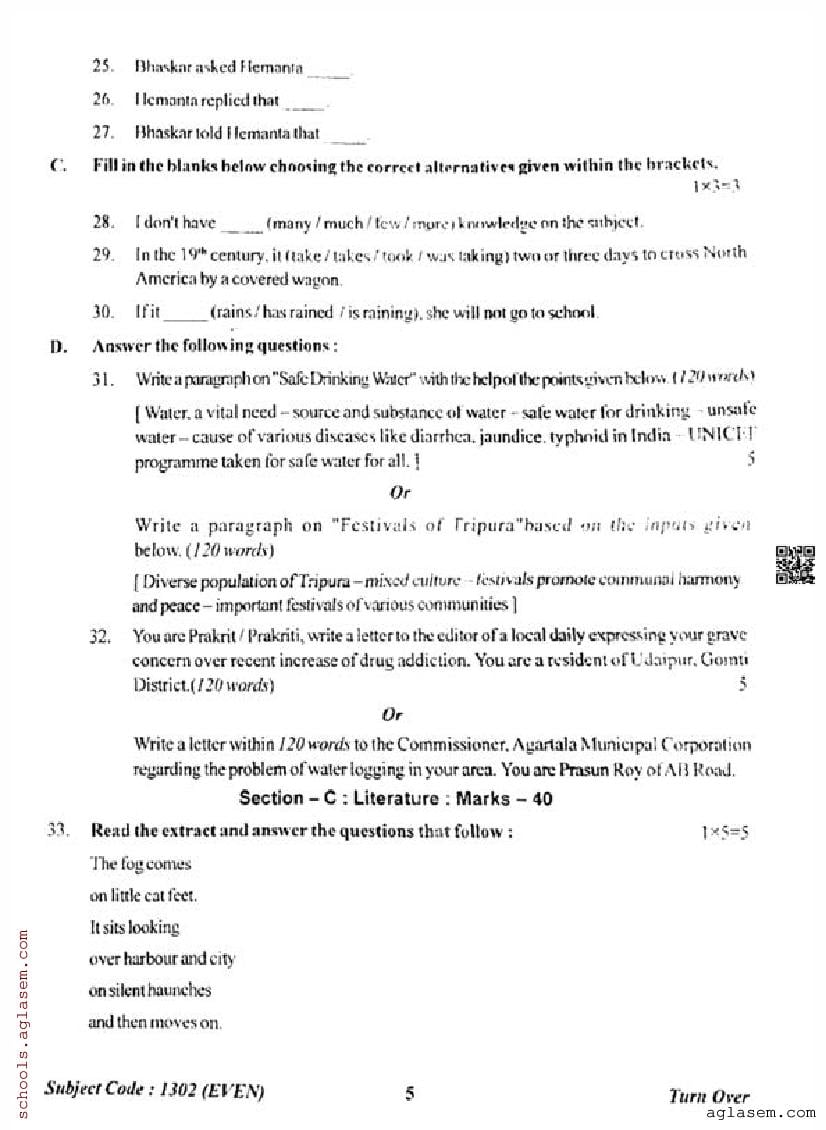 To help students achieve better results, we have provided the TBSE Madhyamik English Question Paper here at aglasem.com. This question paper can be downloaded in PDF format for offline practice.