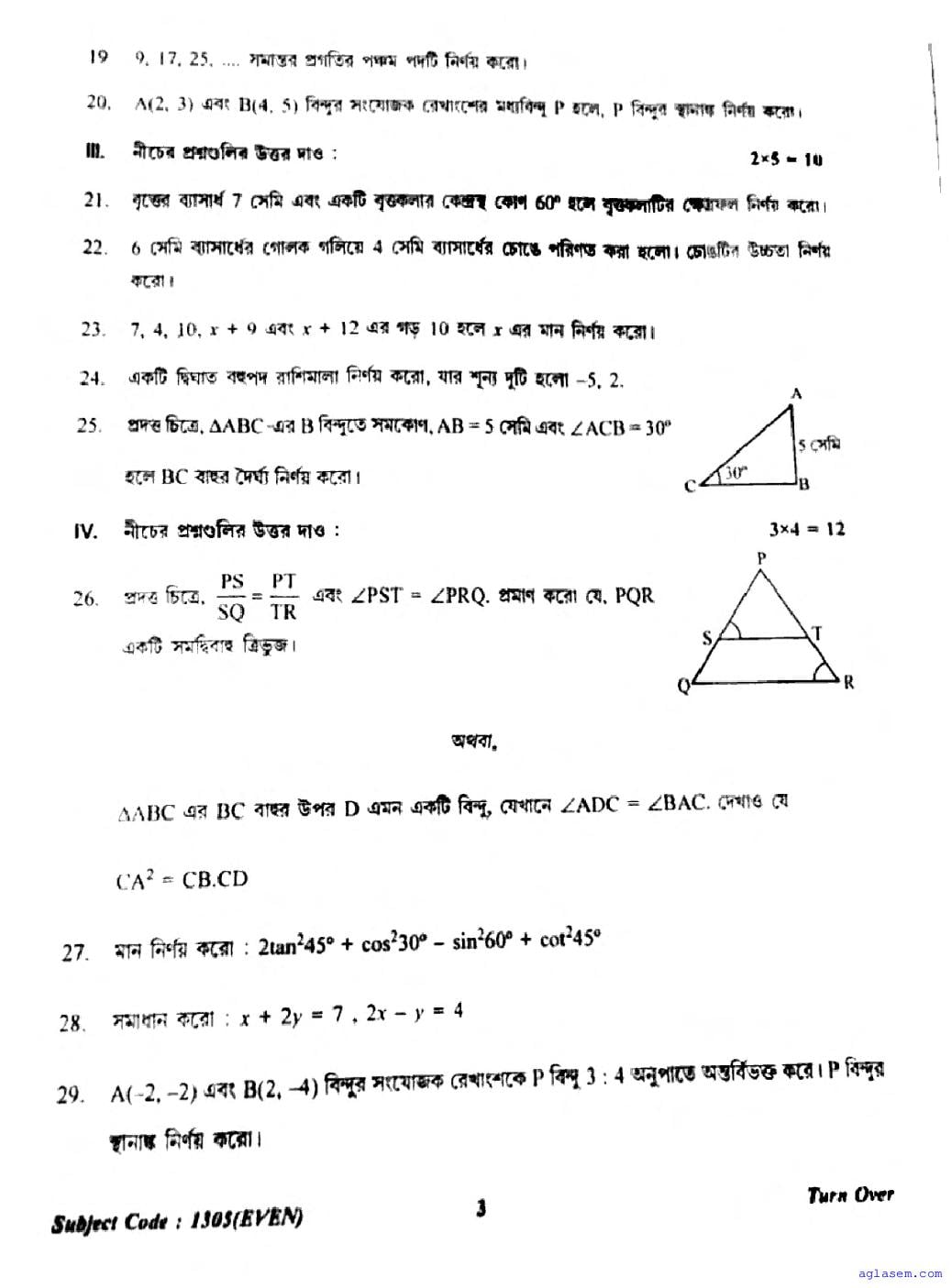 To help students achieve better results, we have provided the TBSE Madhyamik Mathematics Basic Question Paper here at aglasem.com. This question paper can be downloaded in PDF format for offline practice.
