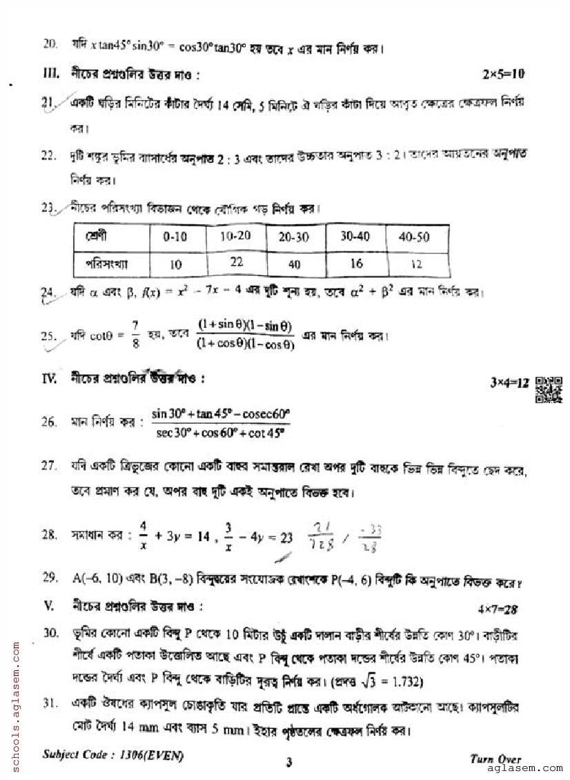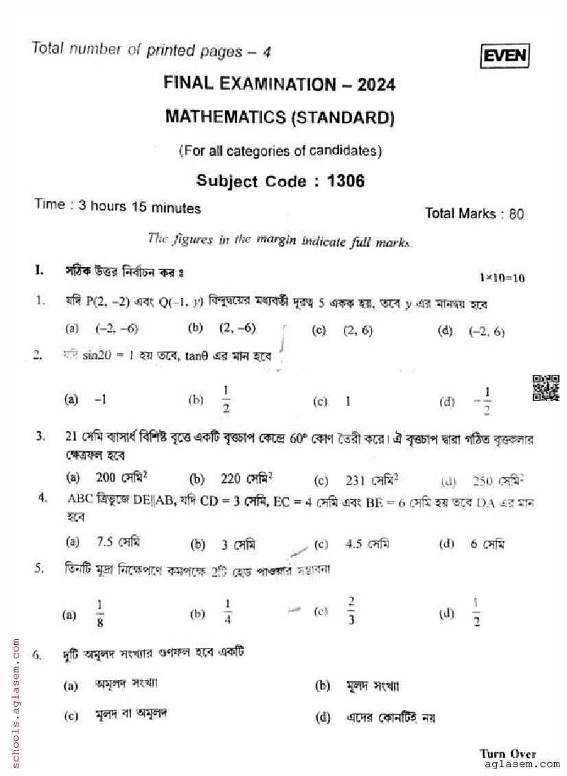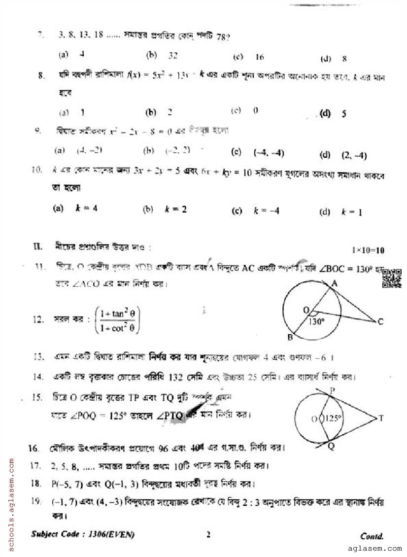 To help students achieve better results, we have provided the TBSE Madhyamik Mathematics Standard Question Paper here at aglasem.com. This question paper can be downloaded in PDF format for offline practice.