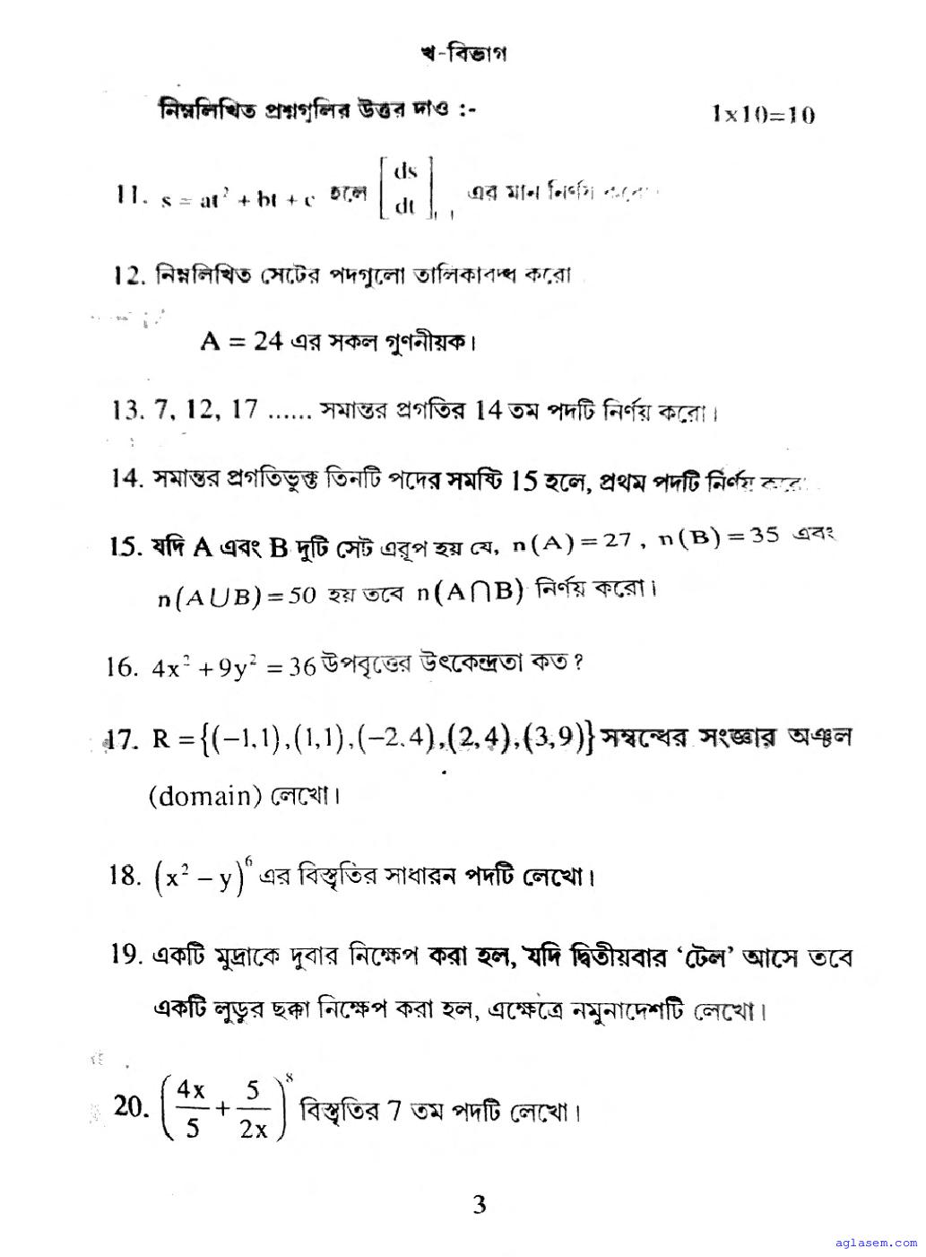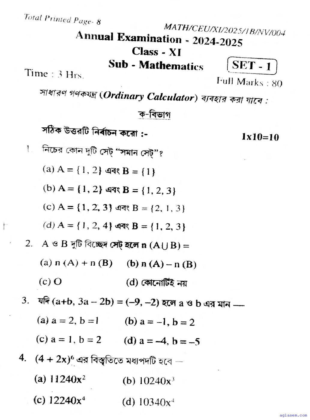 To help students achieve better results, we have provided the TBSE Class XI Mathematics Question Paper here at aglasem.com. This question paper can be downloaded in PDF format for offline practice.