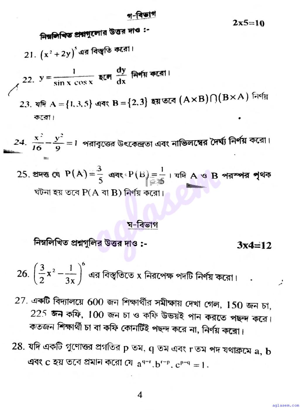 Tripura Board Class 11 Mathematics Question Paper 2025 PDF Download Link – Click Here to Download Question Paper PDF