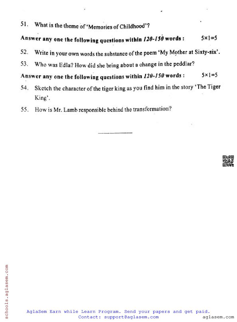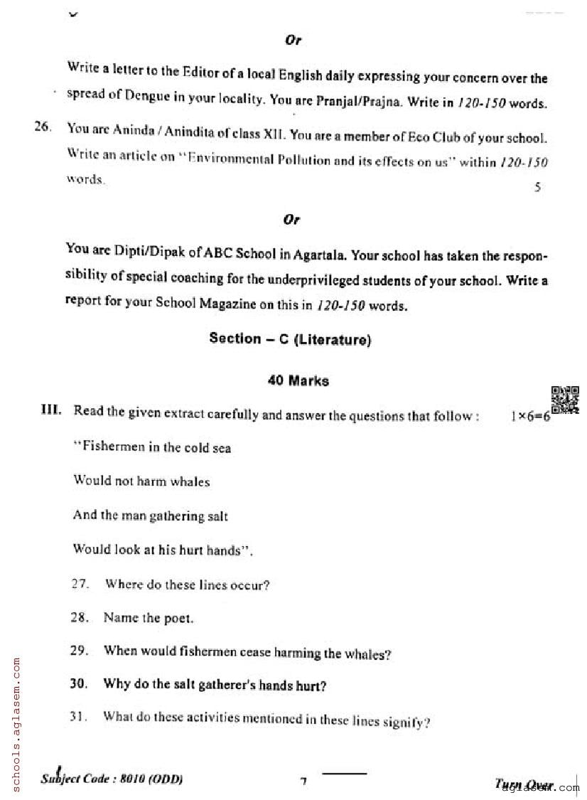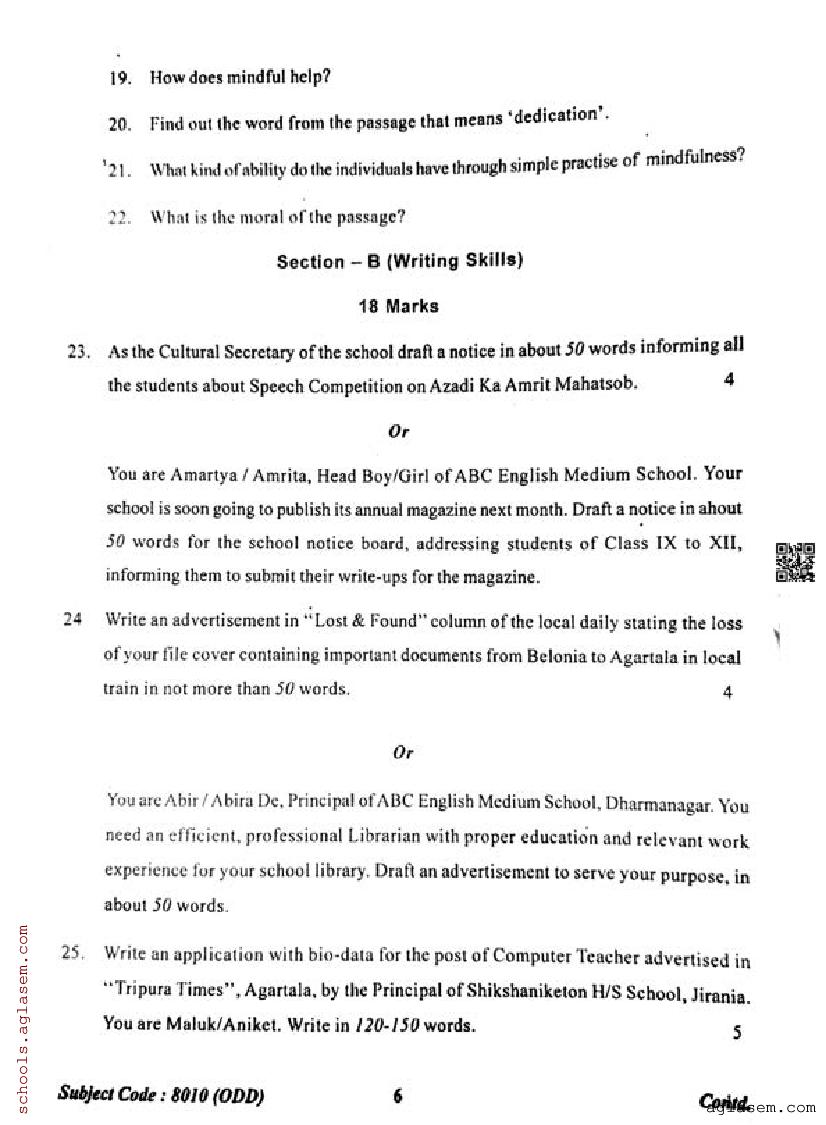 To help students achieve better results, we have provided the TBSE HS English Question Paper here at aglasem.com. This question paper can be downloaded in PDF format for offline practice.