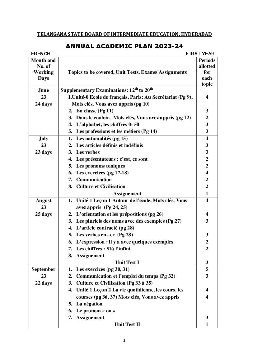 The Telangana Board Syllabus for class 11 Fench is as follows.