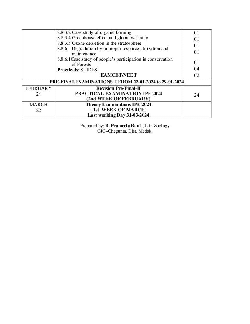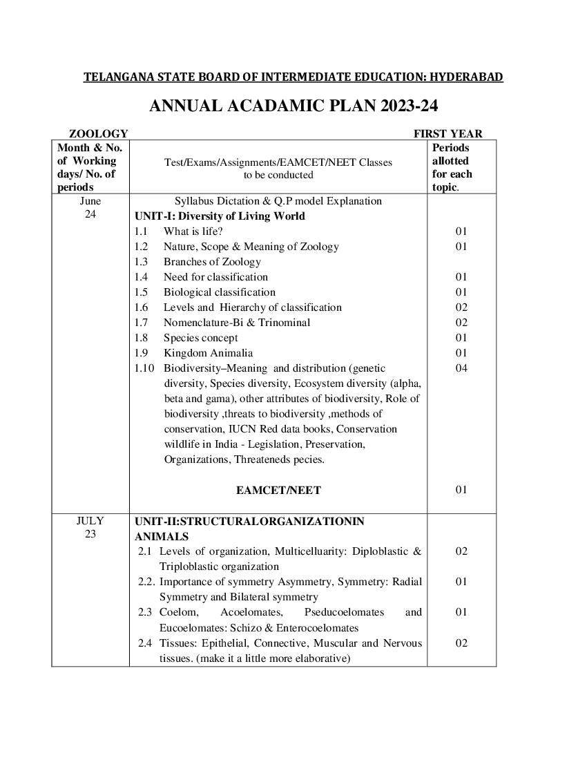 Telangana Class 11 Syllabus 2024 Zoology View Download