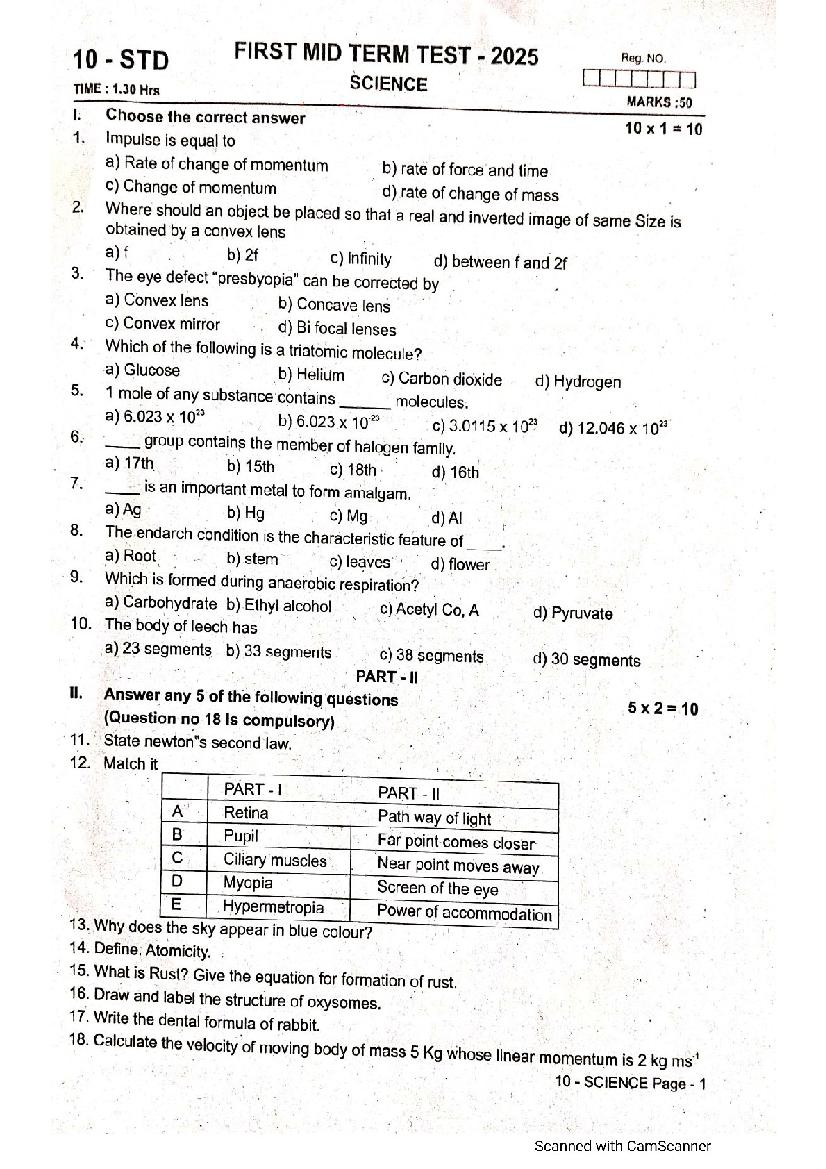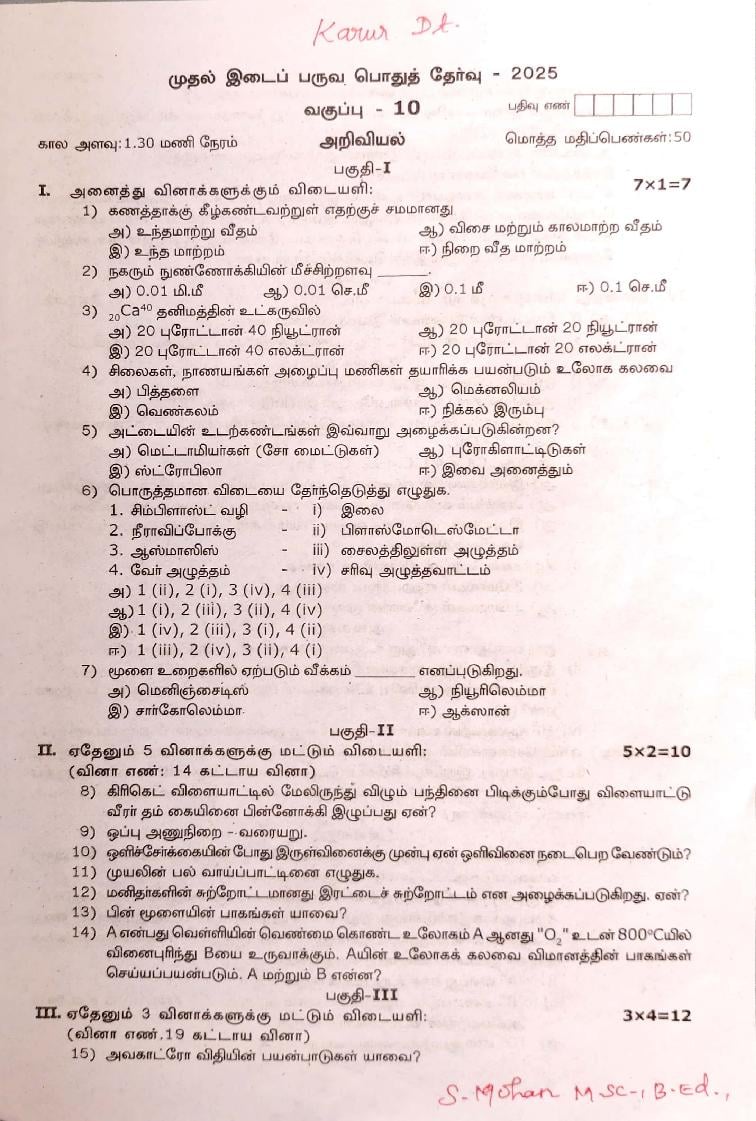 - Therefore if you are 10th standard student with Science as a subject then you also have to appear in TN SSLC 1st Mid Term Science Exam 2026.