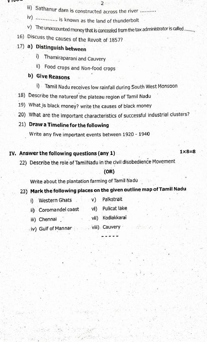 | Exam Preparation Material Here | Tamil Nadu Std 10th Social Science 2nd Mid Term Exam Question Paper |