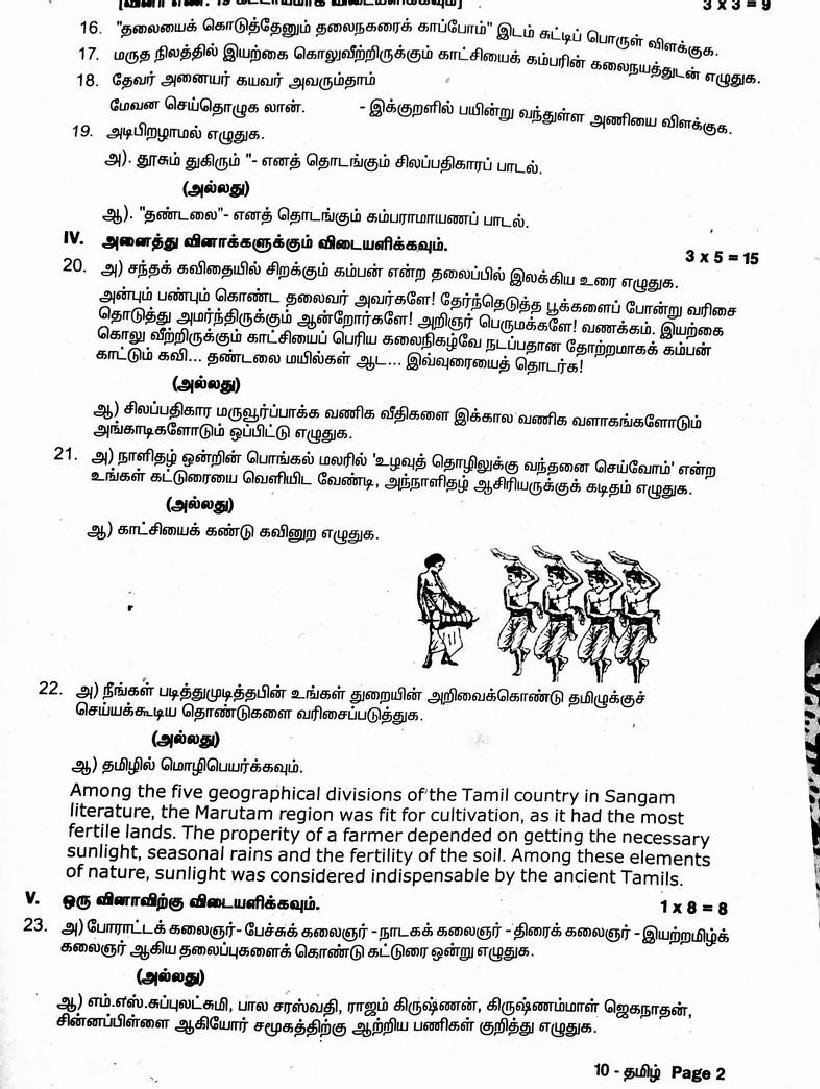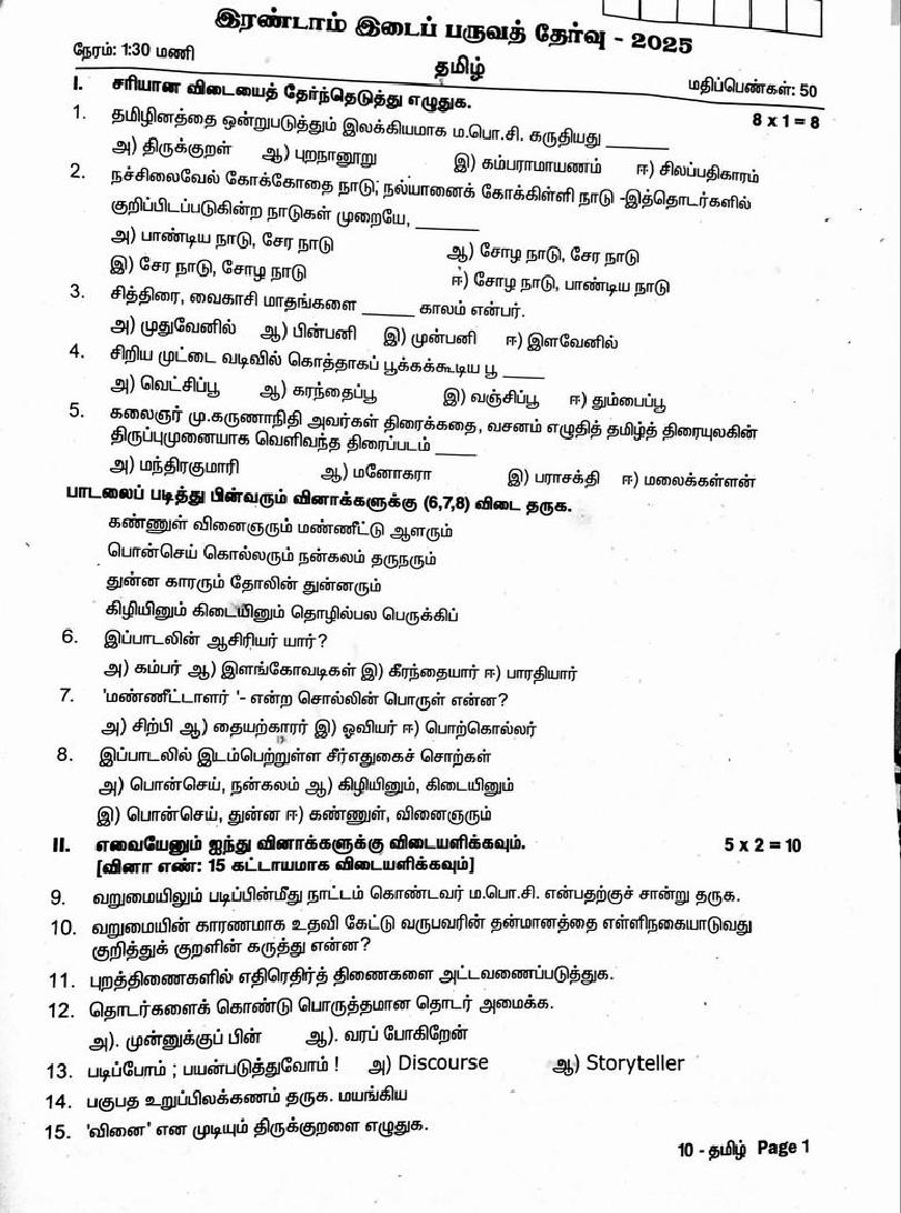 The question paper of Tamil Nadu state Second mid term examinations 2025-26 of standard 10th for Tamil subject is as follows.