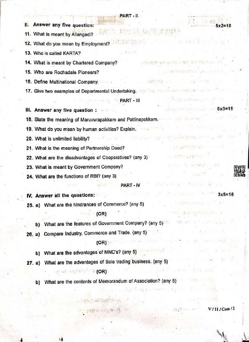 The question paper of Tamil Nadu state First mid term examinations of standard 11th for Commerce subject is as follows.
