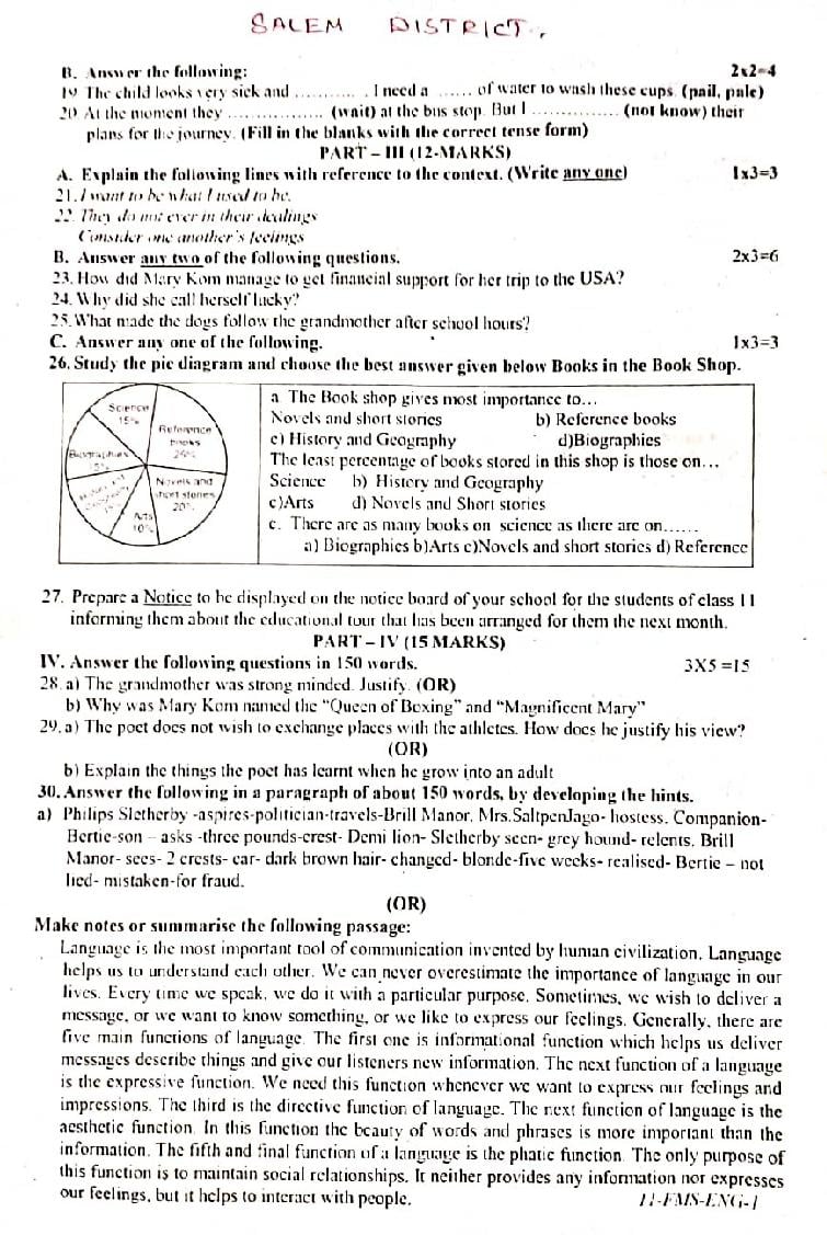 You can download the Tamil Nadu Plus One English 1st Mid Term Exam latest available previous year Question Paper PDF to refer to it at anytime.