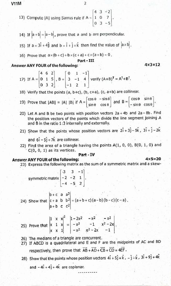 Exam Preparation Material HereTamil Nadu Std 11th Maths 2nd Mid Term Exam Question Paper