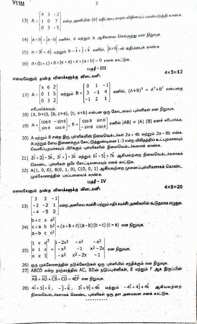 Tags: Class 11thQuestion PapersTamil Nadu