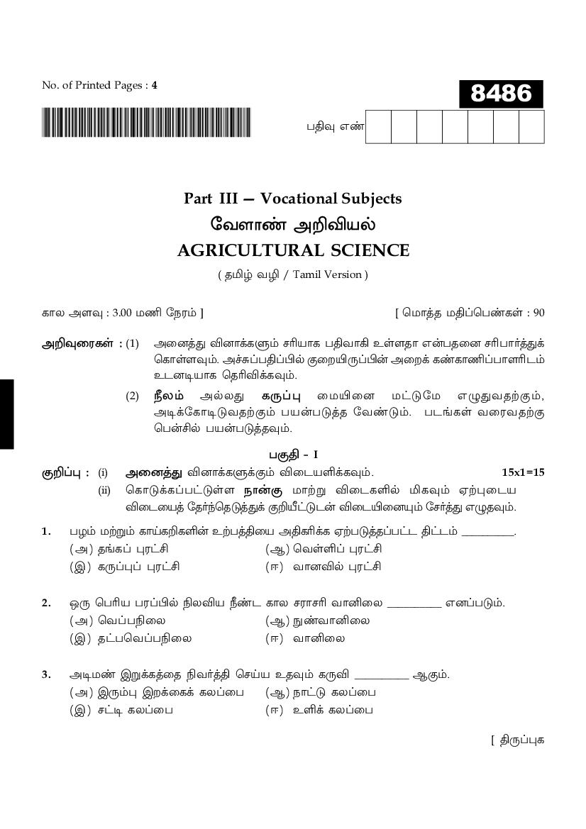 TN 11th Question Paper 2025 Agriculture Science View Download