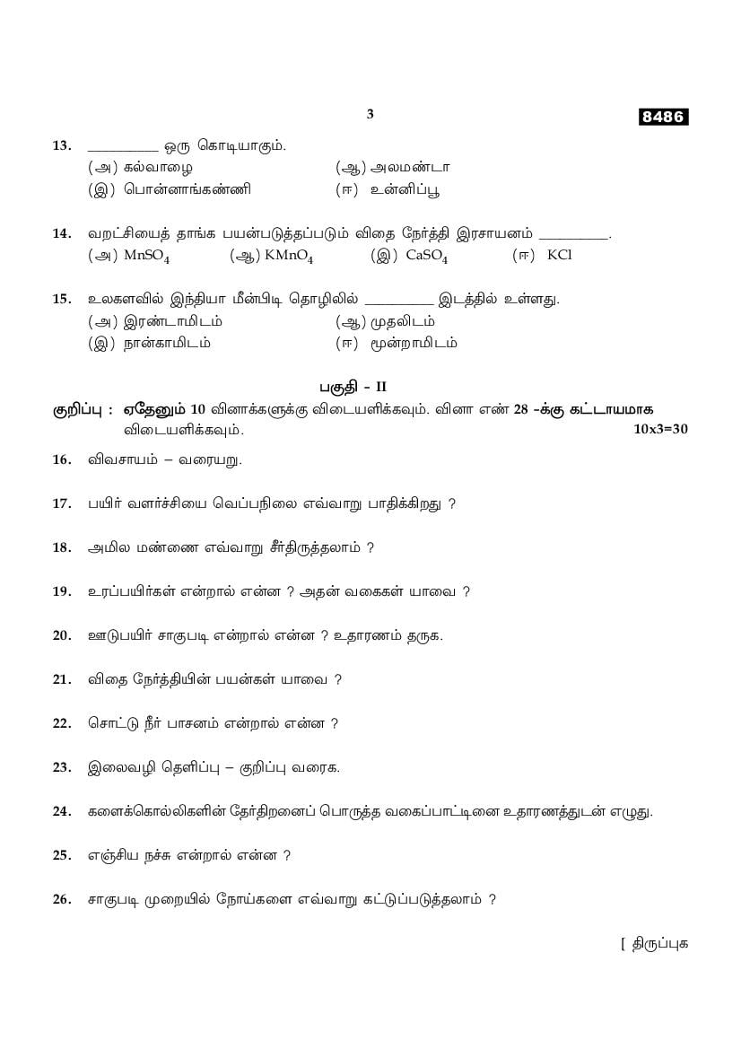 TN 11th Agricultural Science Public Question Paper 2026 PDF