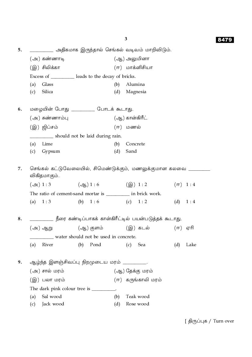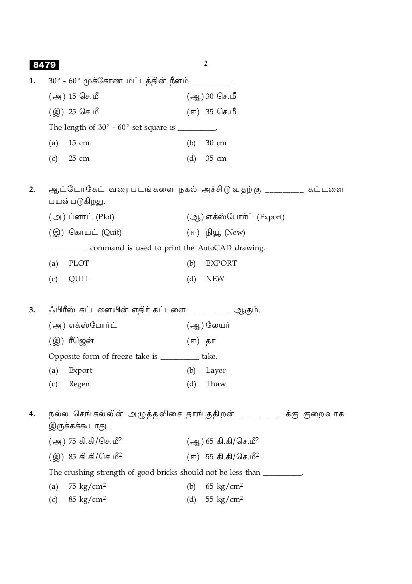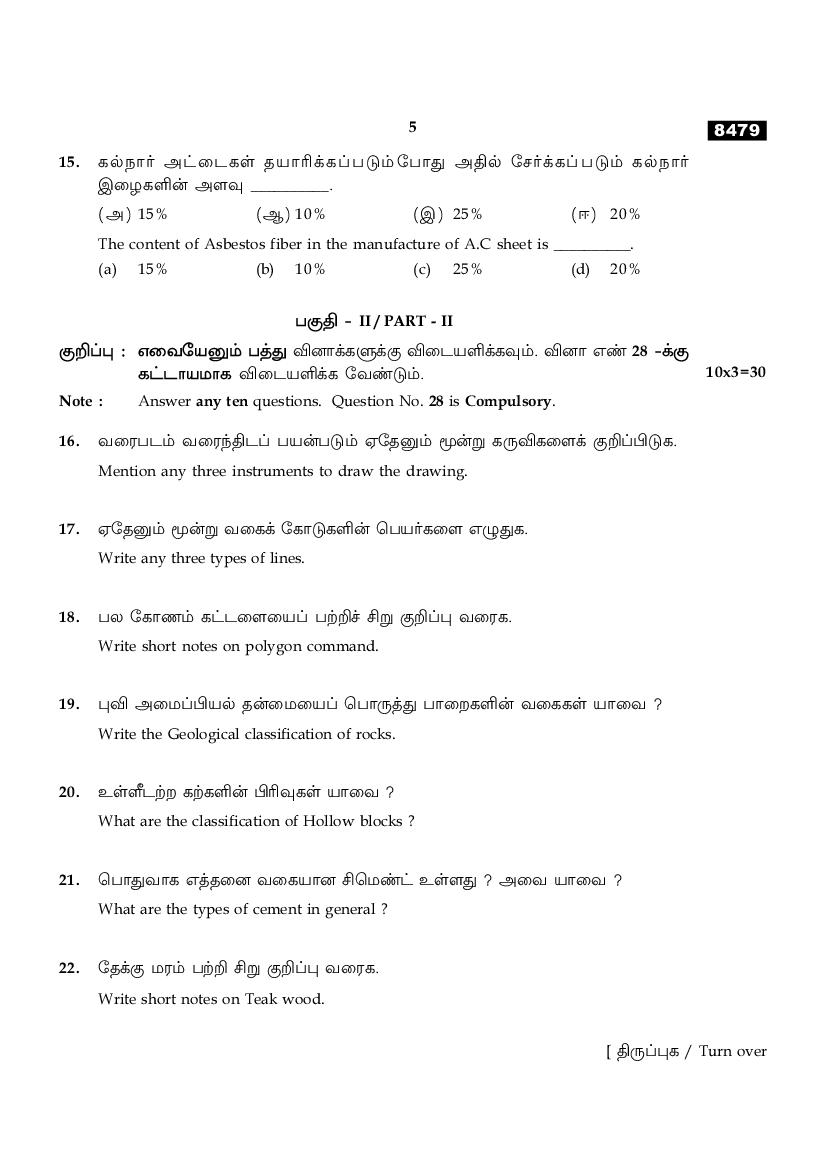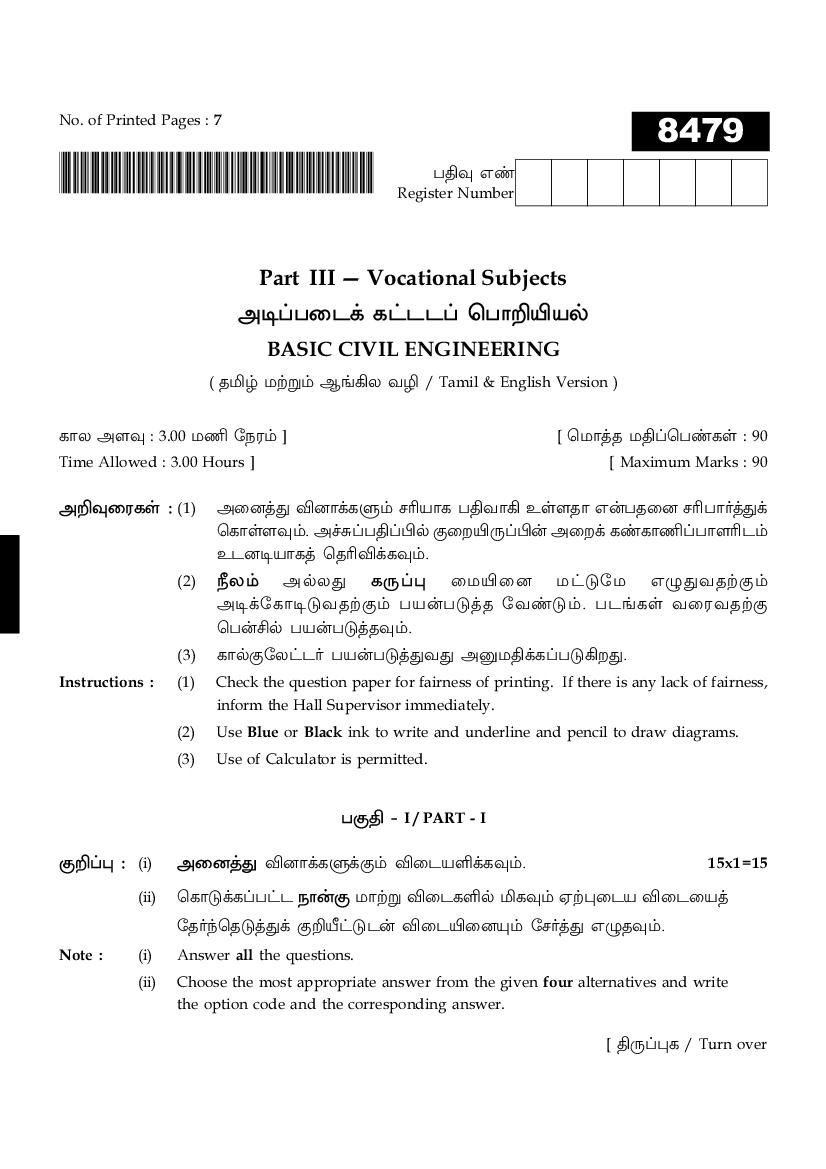 While you can easily download the TN 11th Basic Civil Engineering previous year question paper from link above. Similarly you can study the complete Basic Civil Engineering question paper here also. The entire HSE (+1) question paper is as follows.
