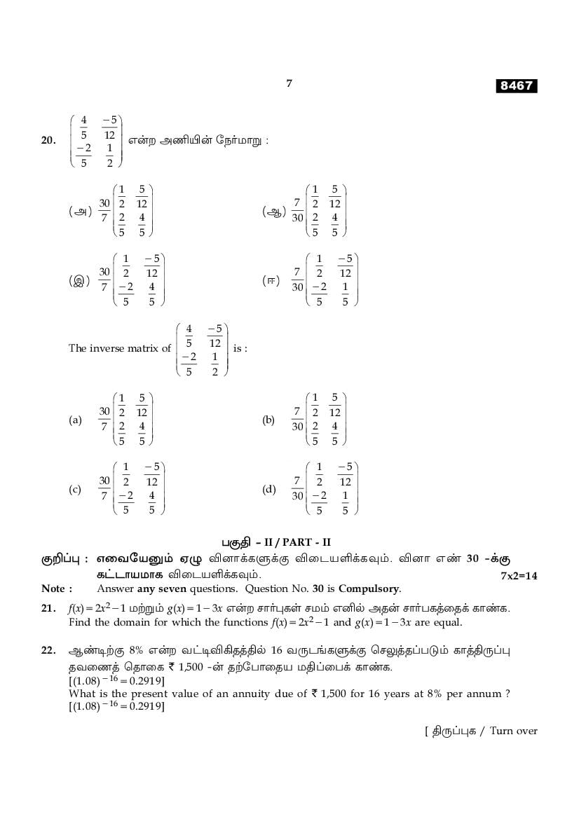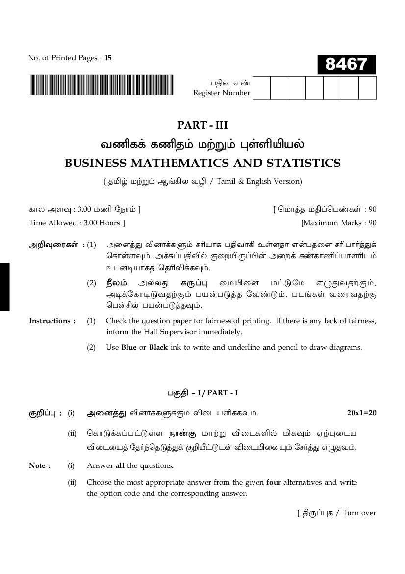 While you can easily download the TN 11th Business Mathematics & Statistics previous year question paper from link above. Similarly you can study the complete Business Mathematics & Statistics question paper here also. The entire HSE (+1) question paper is as follows.