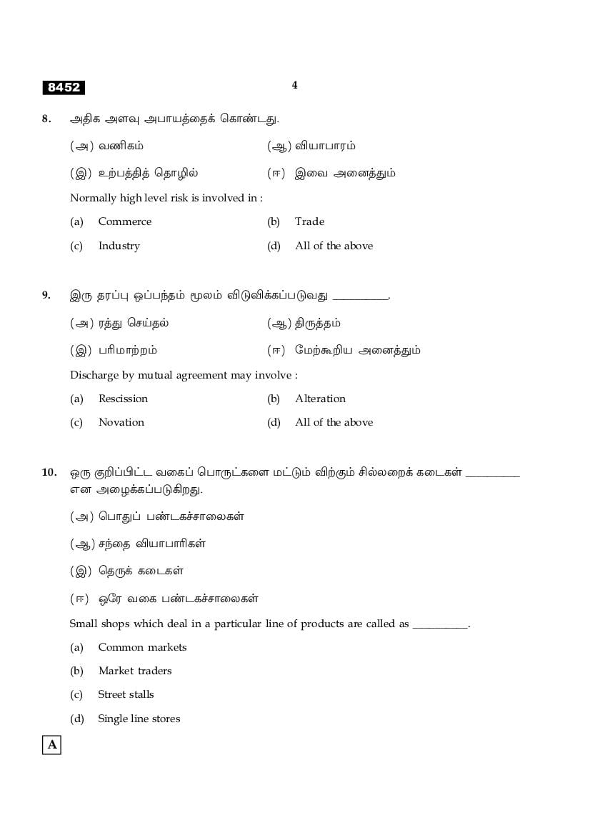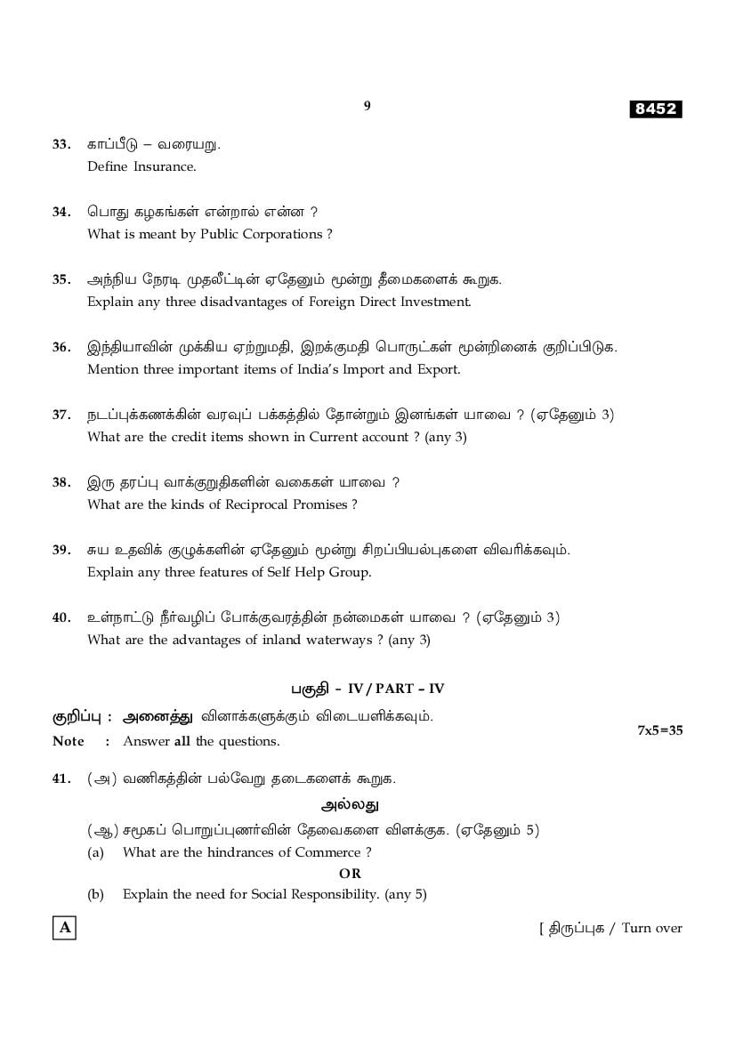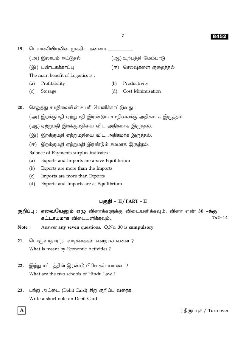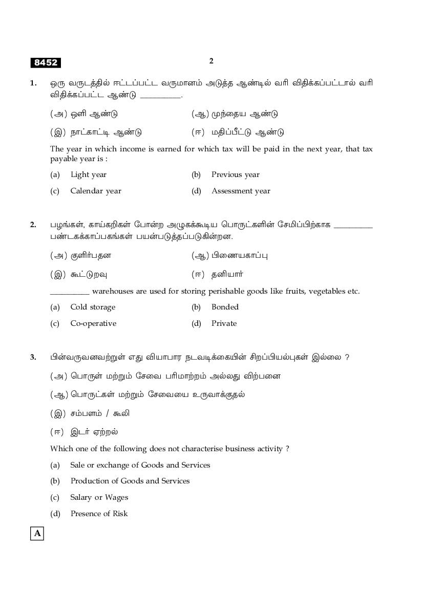 The TN Board Previous Year Question Paper for HSE (+1) (Class 11) Commerce is as follows.