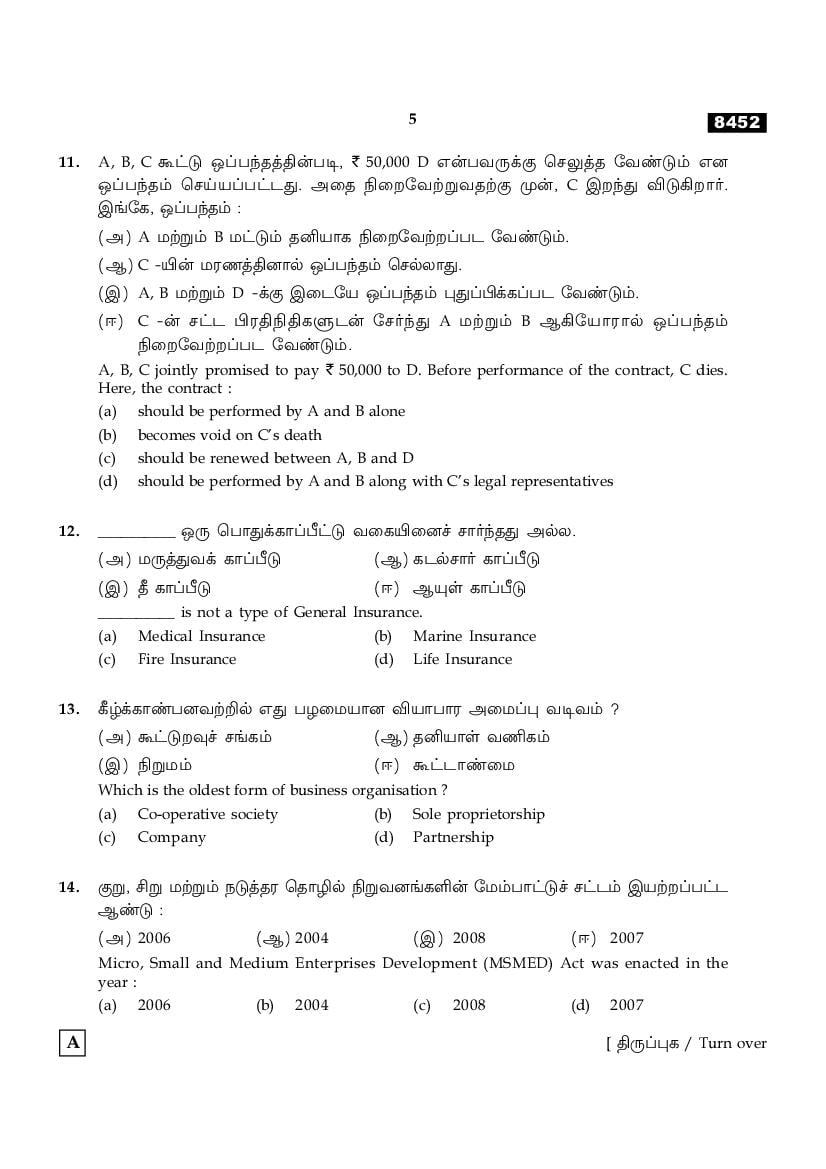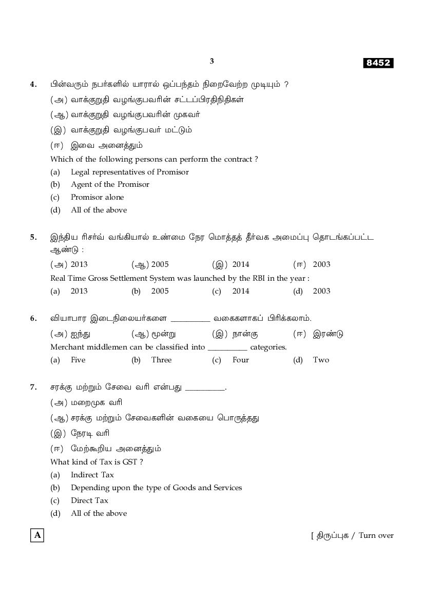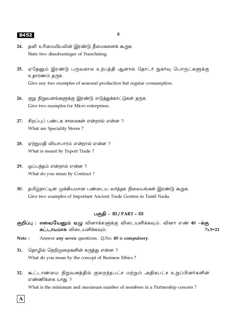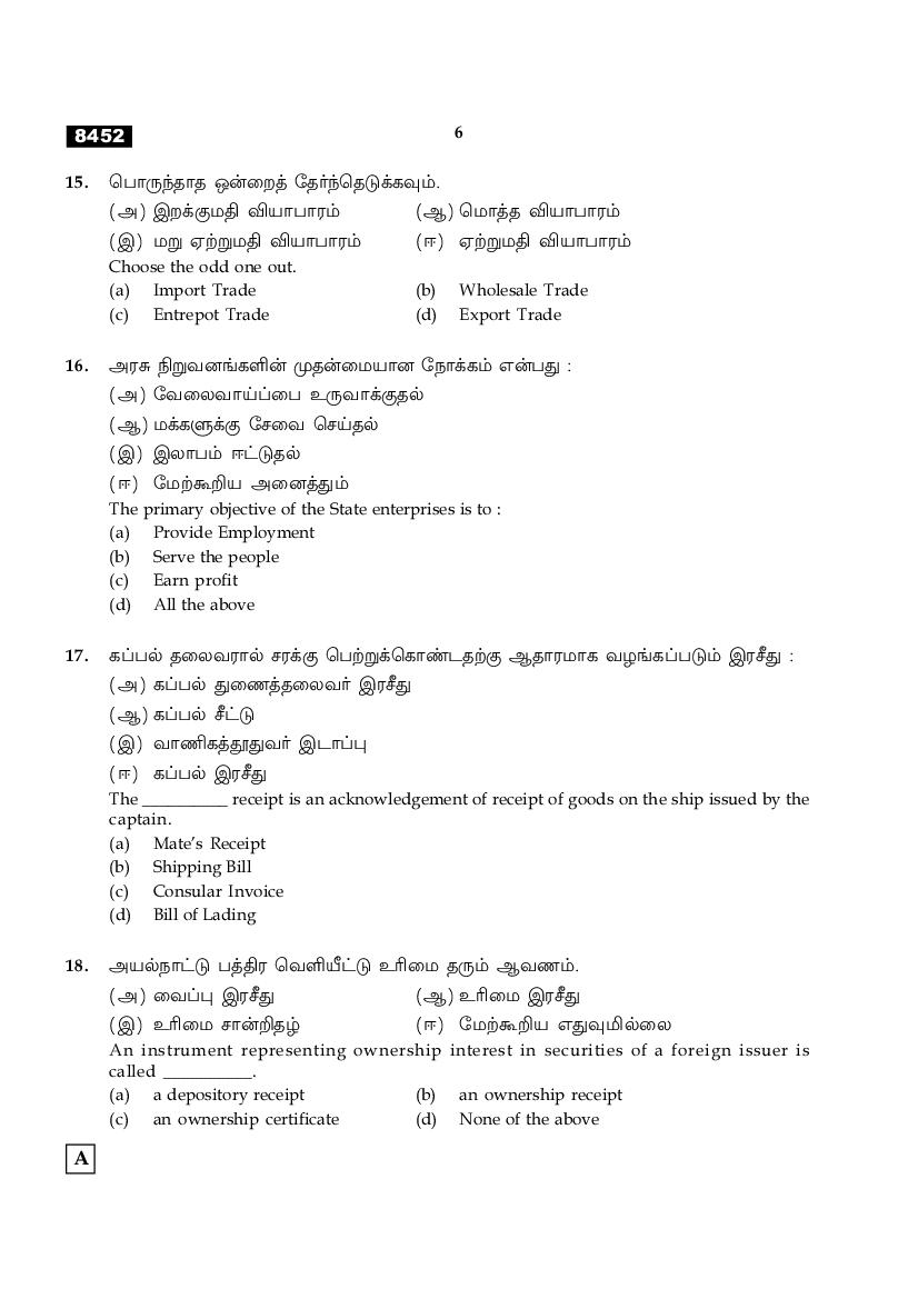 The TN Board Previous Year Question Paper for HSE (+1) (Class 11) Commerce is as follows.
