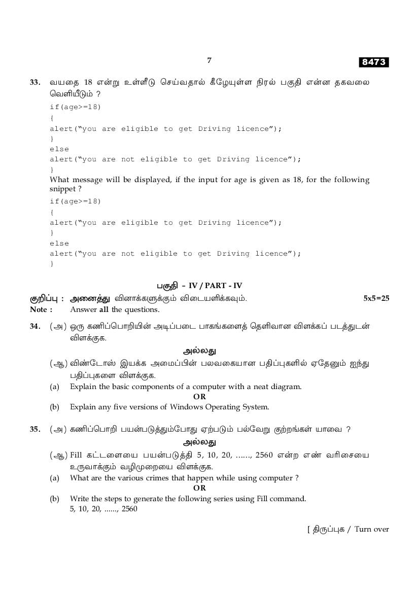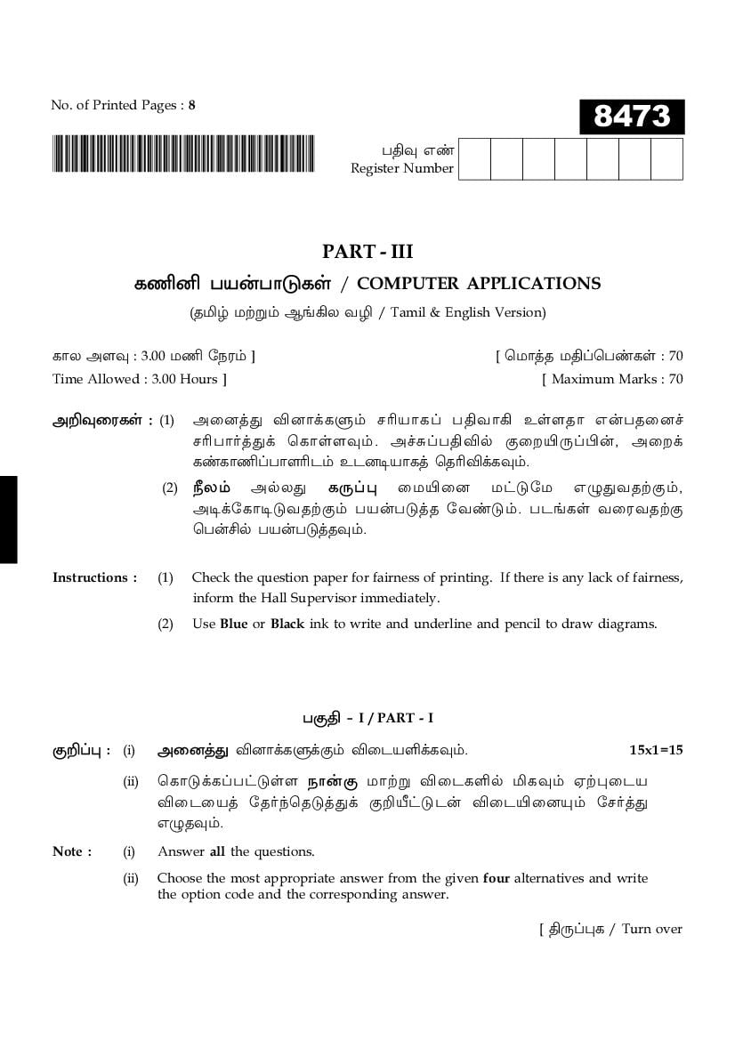 TN 11th Question Paper 2025 Computer Application View Download