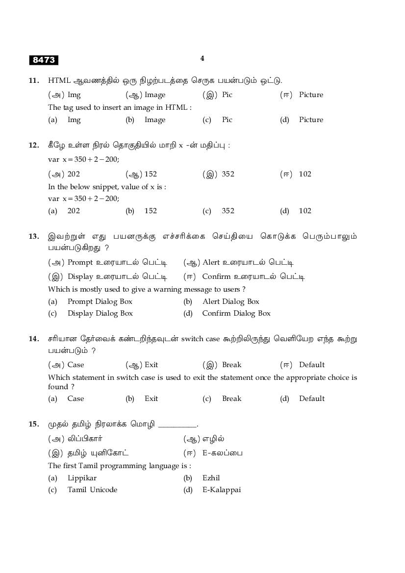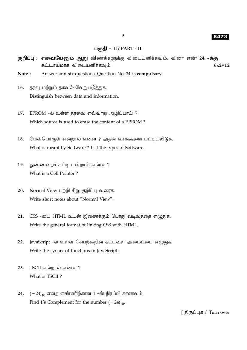 The TN Board Previous Year Question Paper for HSE (+1) (Class 11) Computer Application is as follows.