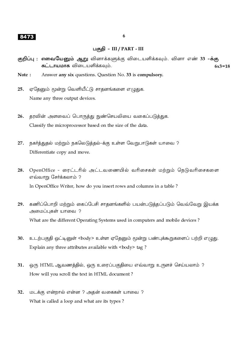 While you can easily download the TN 11th Computer Application previous year question paper from link above. Similarly you can study the complete Computer Application question paper here also. The entire HSE (+1) question paper is as follows.
