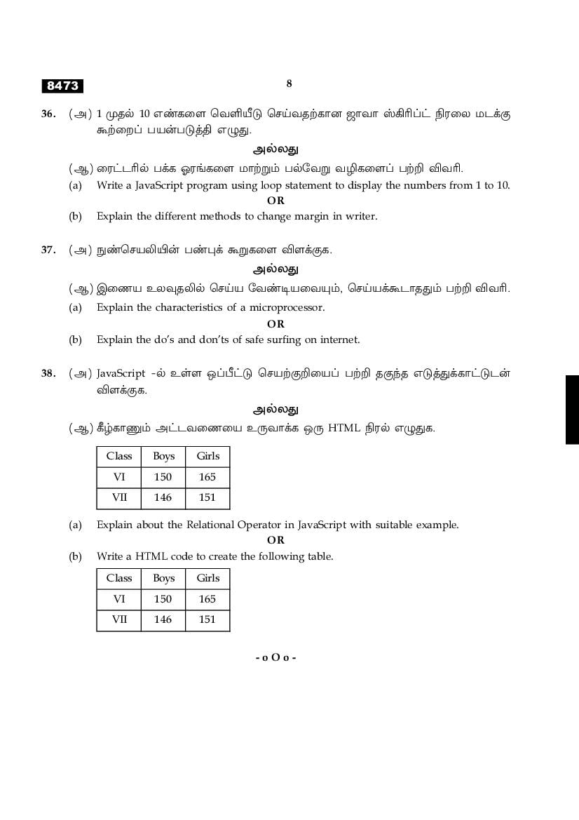 | Educational Resource Here | Tamil Nadu Board Previous Year Question Paper of Class 11 Computer Application |
