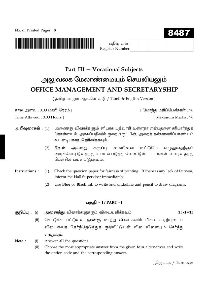 While you can easily download the TN 11th Office Management & Secretaryship previous year question paper from link above. Similarly you can study the complete Office Management & Secretaryship question paper here also. The entire HSE (+1) question paper is as follows.