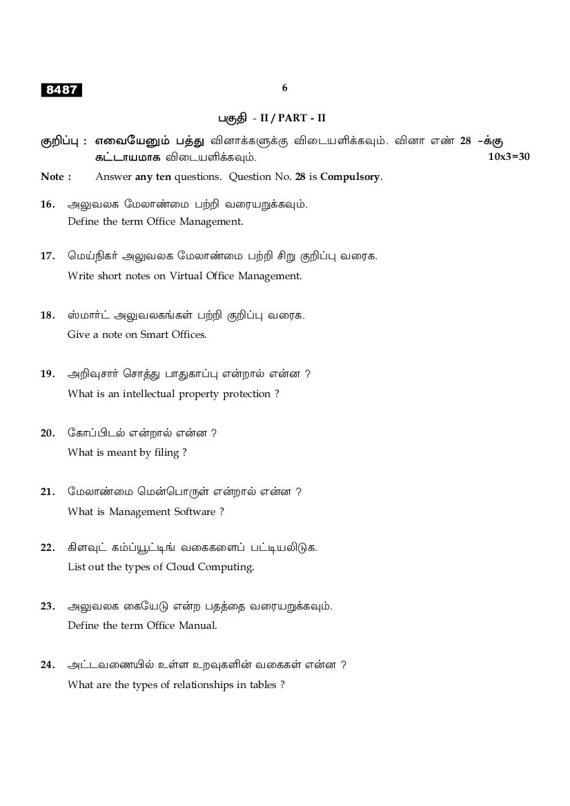 | Educational Resource Here | Tamil Nadu Board Previous Year Question Paper of Class 11 Office Management & Secretaryship |