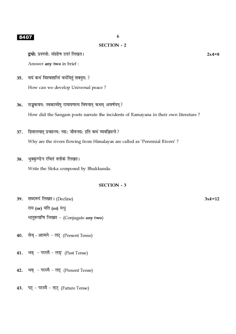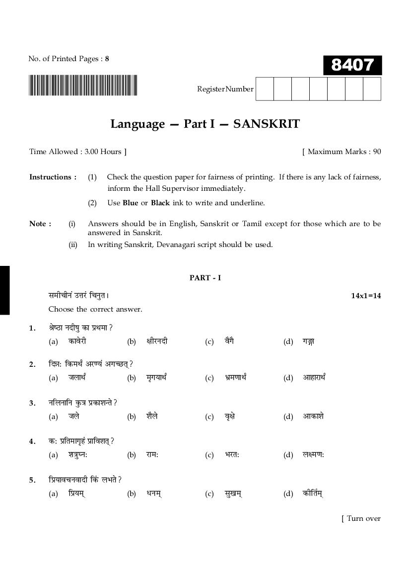 The TN Board Previous Year Question Paper for HSE (+1) (Class 11) Sanskrit is as follows.