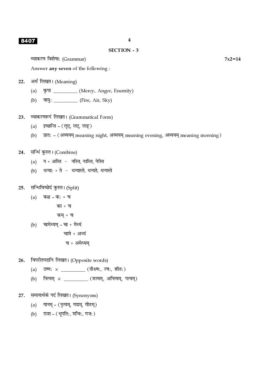While you can easily download the TN 11th Sanskrit previous year question paper from link above. Similarly you can study the complete Sanskrit question paper here also. The entire HSE (+1) question paper is as follows.
