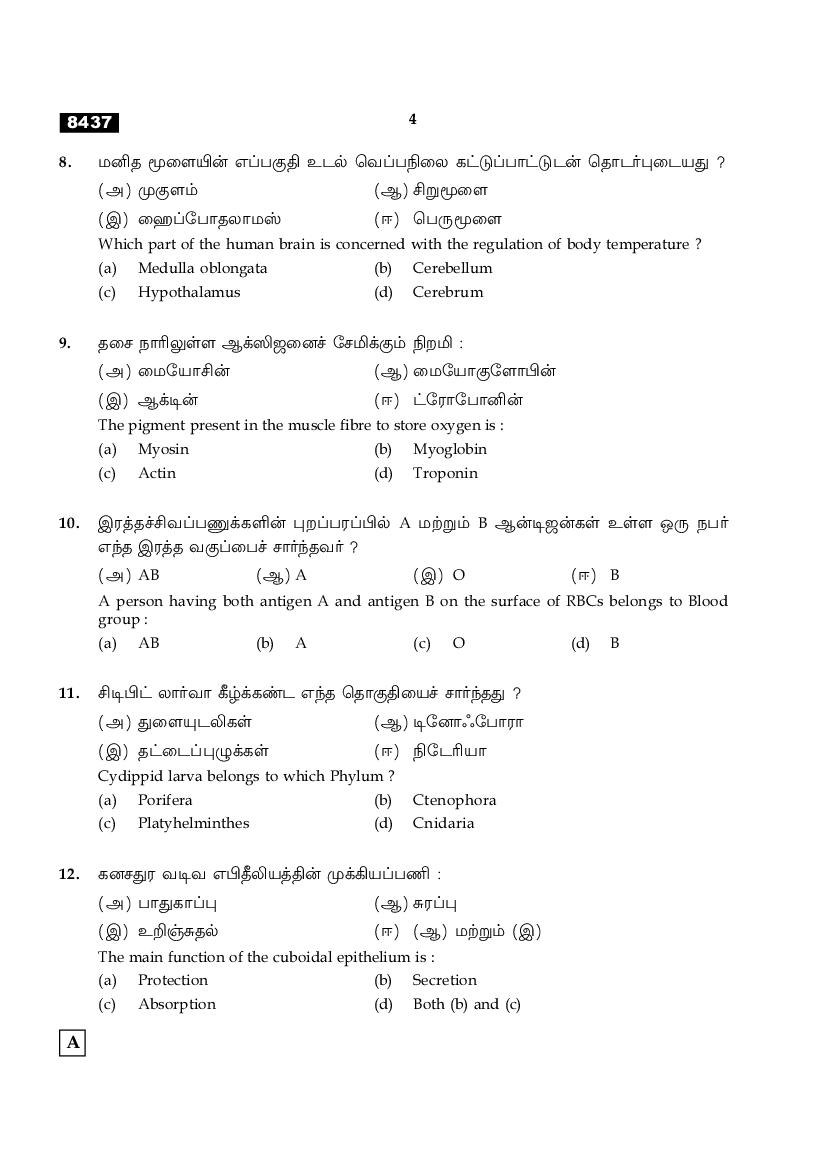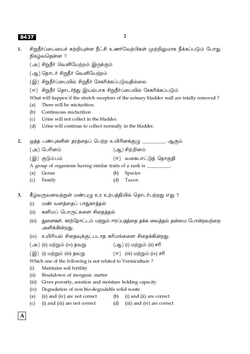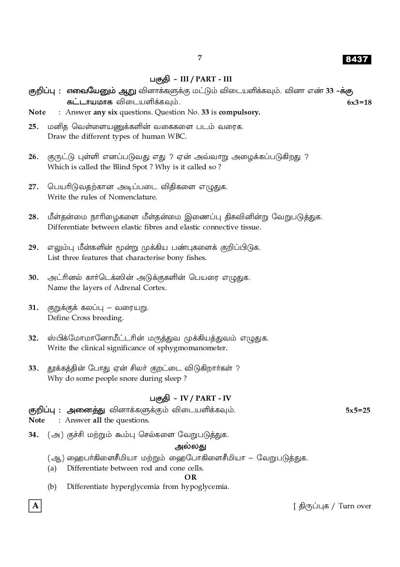 The TN Board Previous Year Question Paper for HSE (+1) (Class 11) Zoology is as follows.