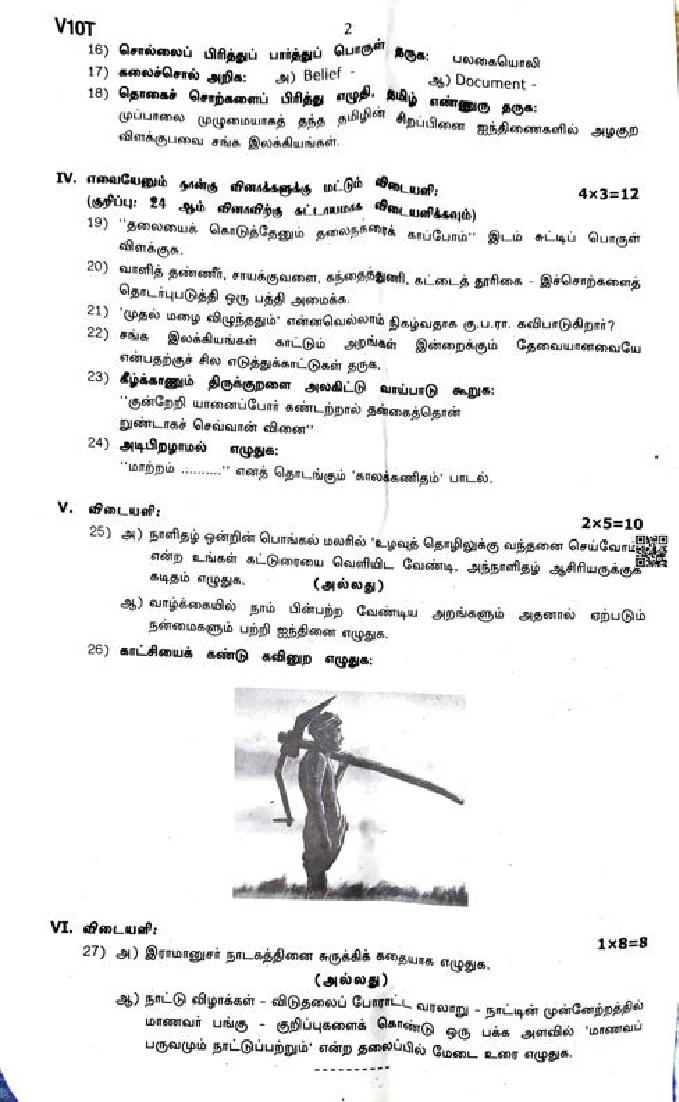 The question paper of Tamil Nadu state Second mid term examinations of standard 11th for Tamil subject is as follows.
