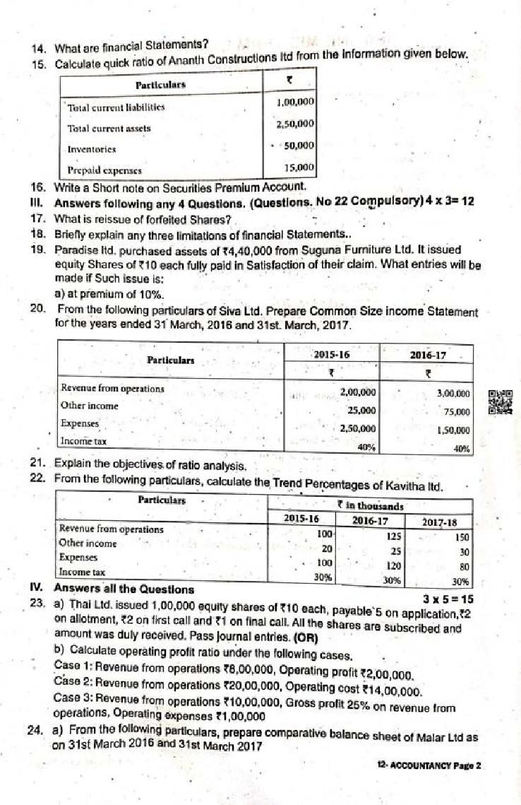 | Exam Preparation Material Here | Tamil Nadu Std 12th Accountancy 2nd Mid Term Exam Question Paper |