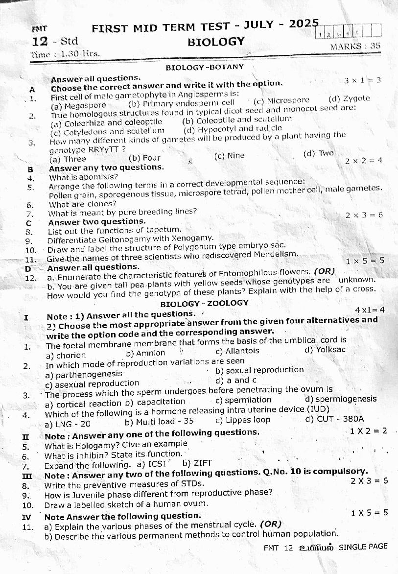 - Therefore if you are 12th standard student with Biology as a subject then you also have to appear in TN Plus Two 1st Mid Term Biology Exam 2026.
