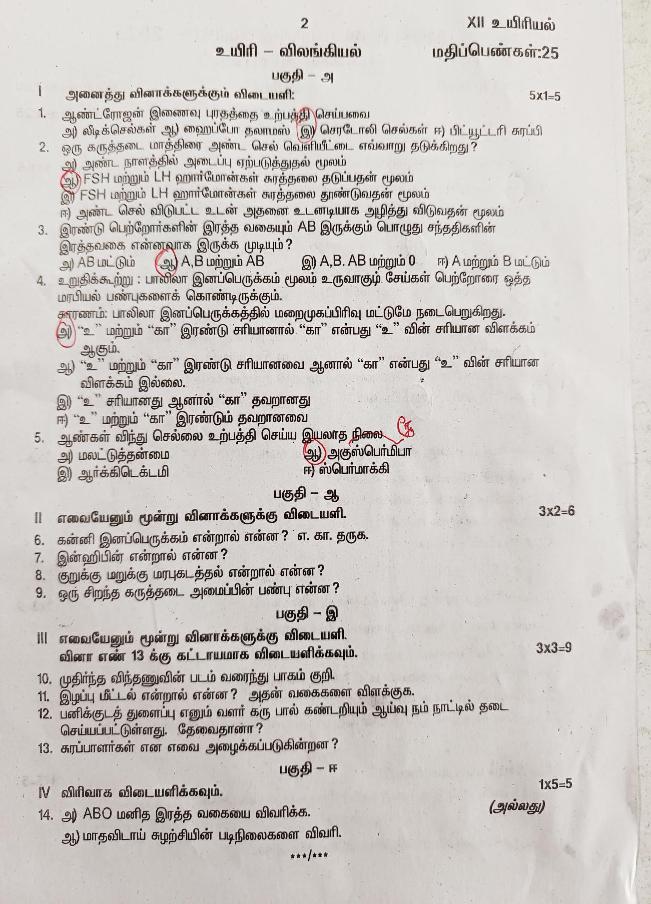 | Exam Preparation Material Here | Tamil Nadu Std 12th Biology 1st Mid Term Exam Question Paper |