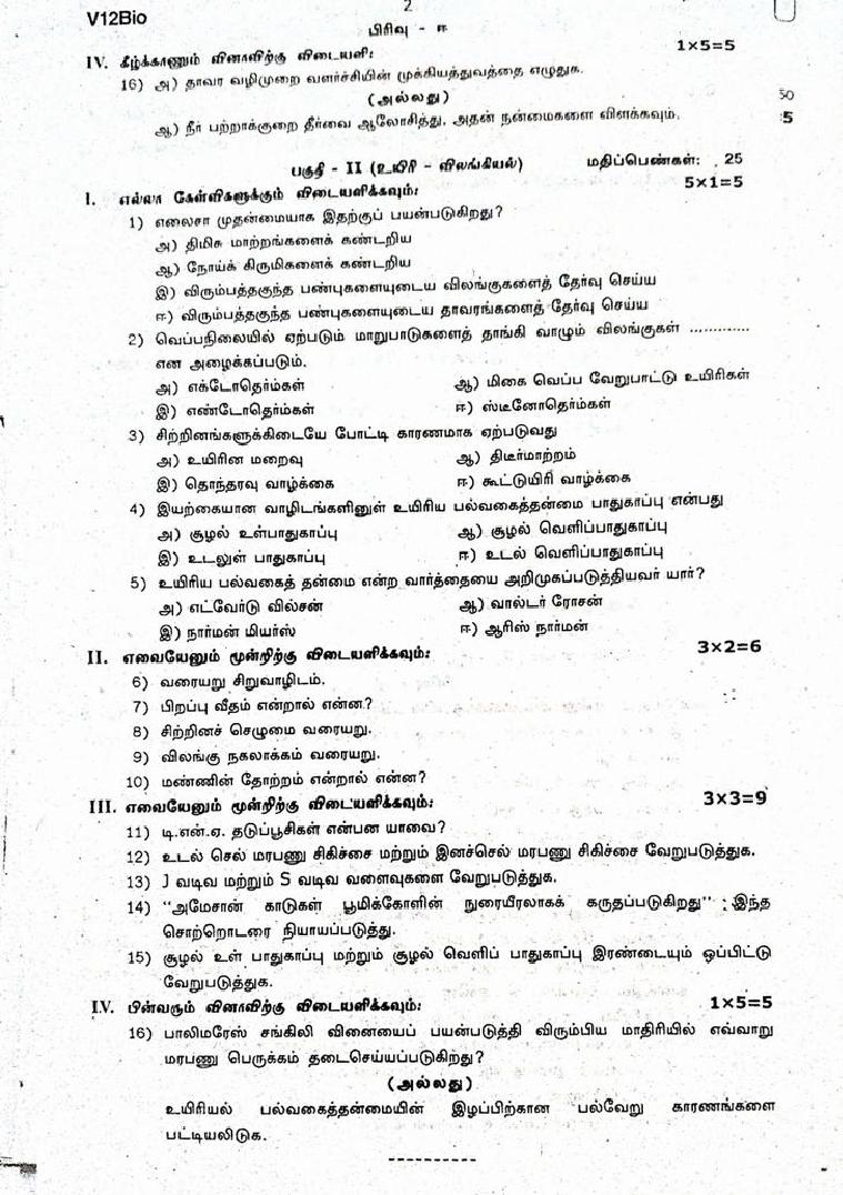 | Exam Preparation Material Here | Tamil Nadu Std 12th Biology 2nd Mid Term Exam Question Paper |