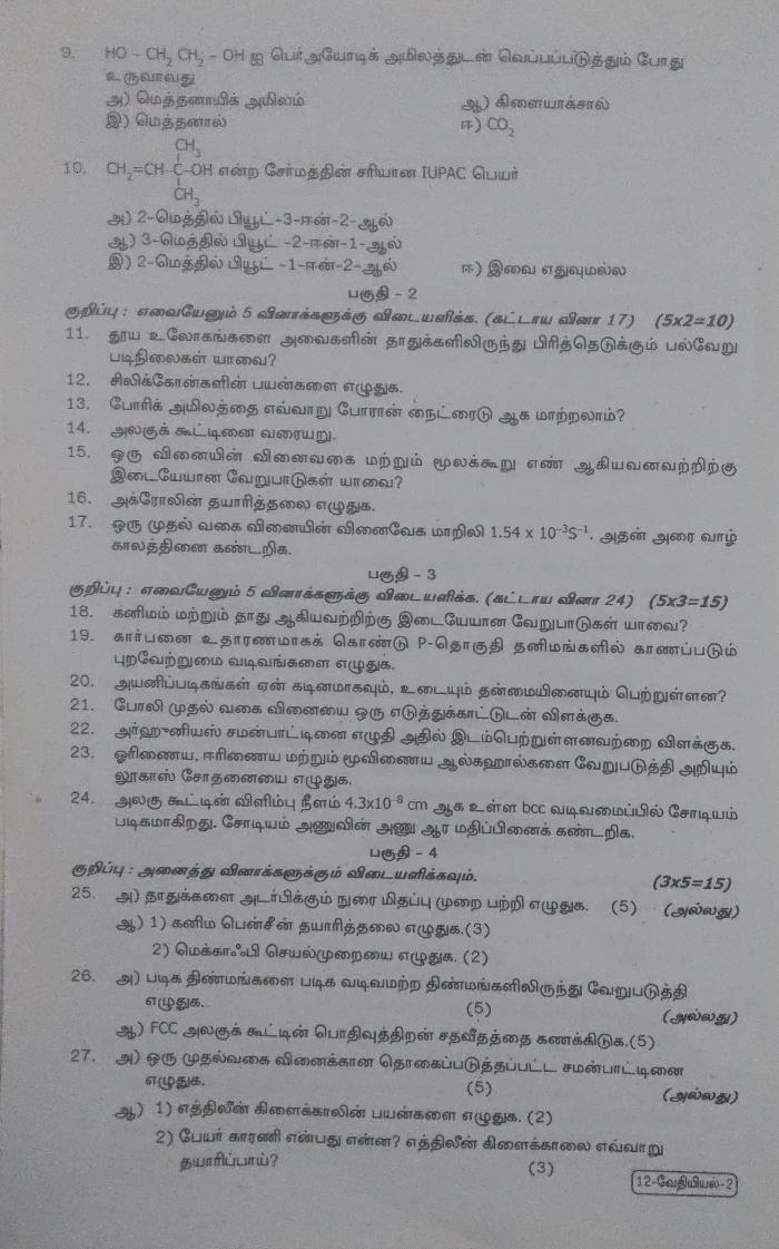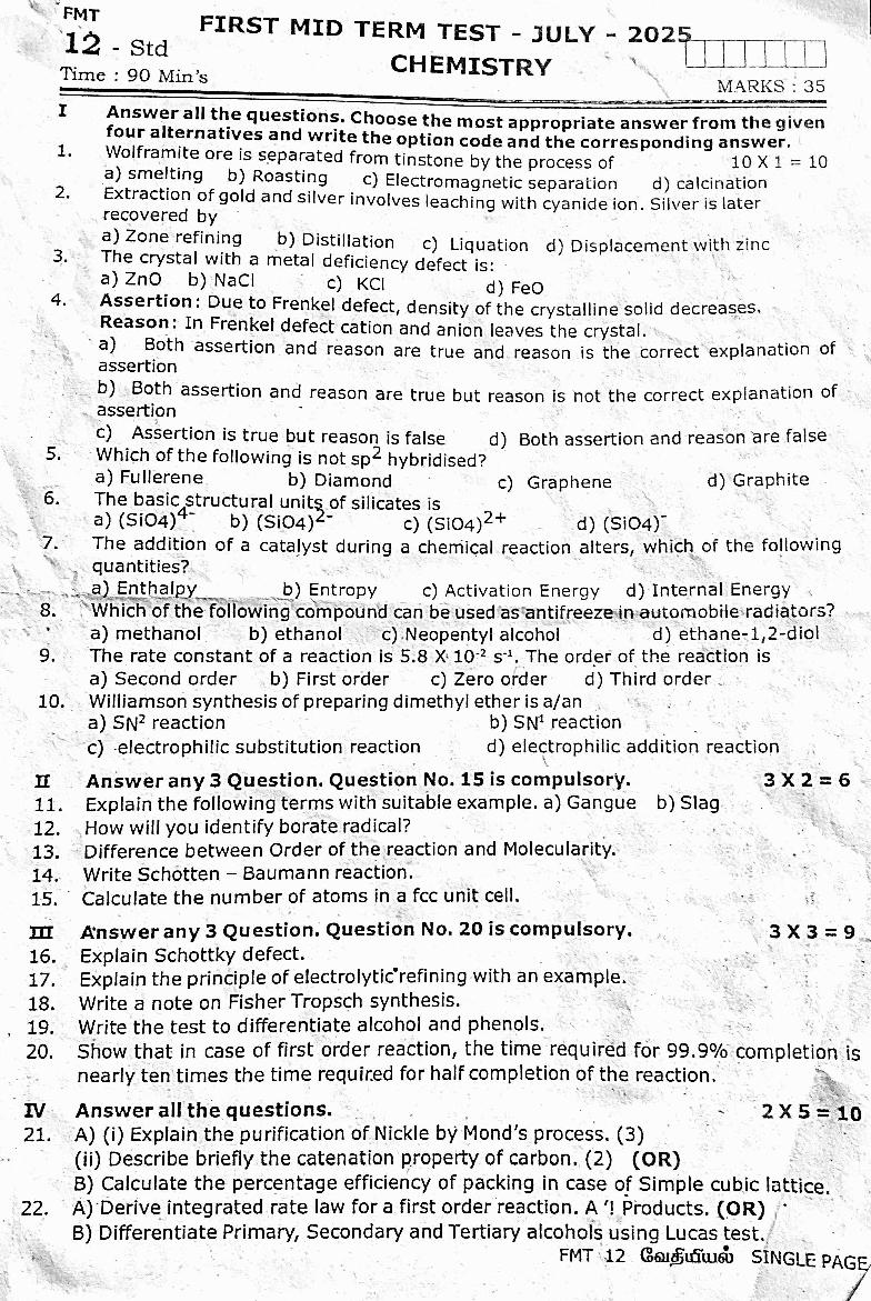 | Exam Preparation Material Here | Tamil Nadu Std 12th Chemistry 1st Mid Term Exam Question Paper |