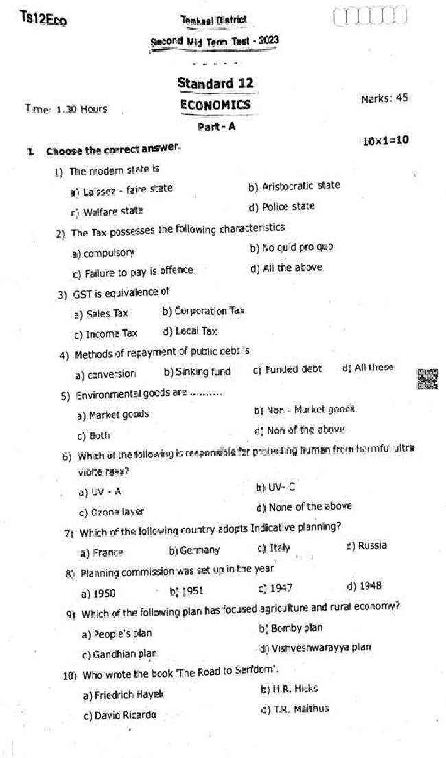 If you have any queries on TN 12th Economics Second Mid Term Question Paper 2024, then please ask in comments below.