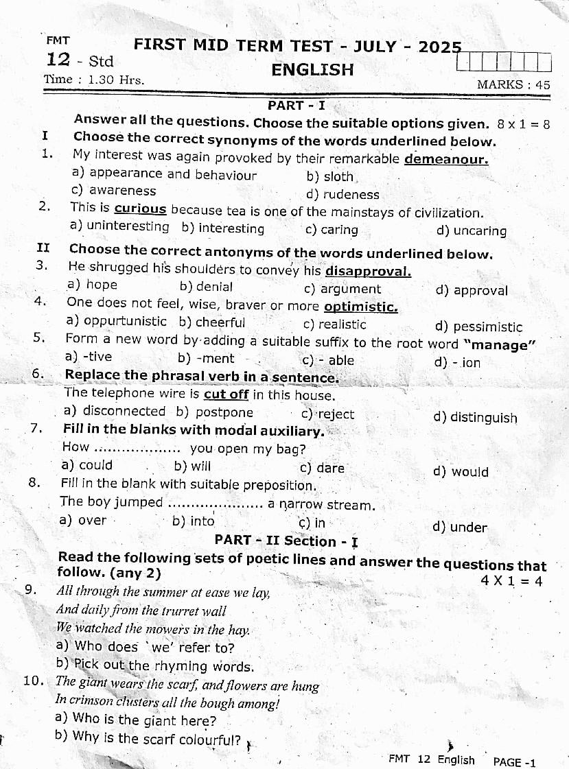 - 12th First Mid Term Question Paper