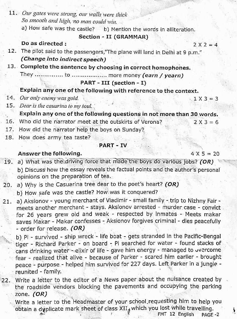 | Exam Preparation Material Here | Tamil Nadu Std 12th English 1st Mid Term Exam Question Paper |