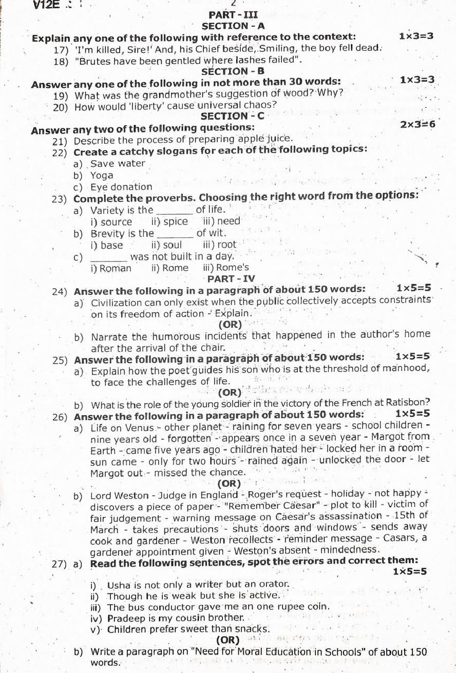 You can download the Tamil Nadu Plus Two English 2nd Mid Term Exam latest available previous year Question Paper PDF to refer to it at anytime.