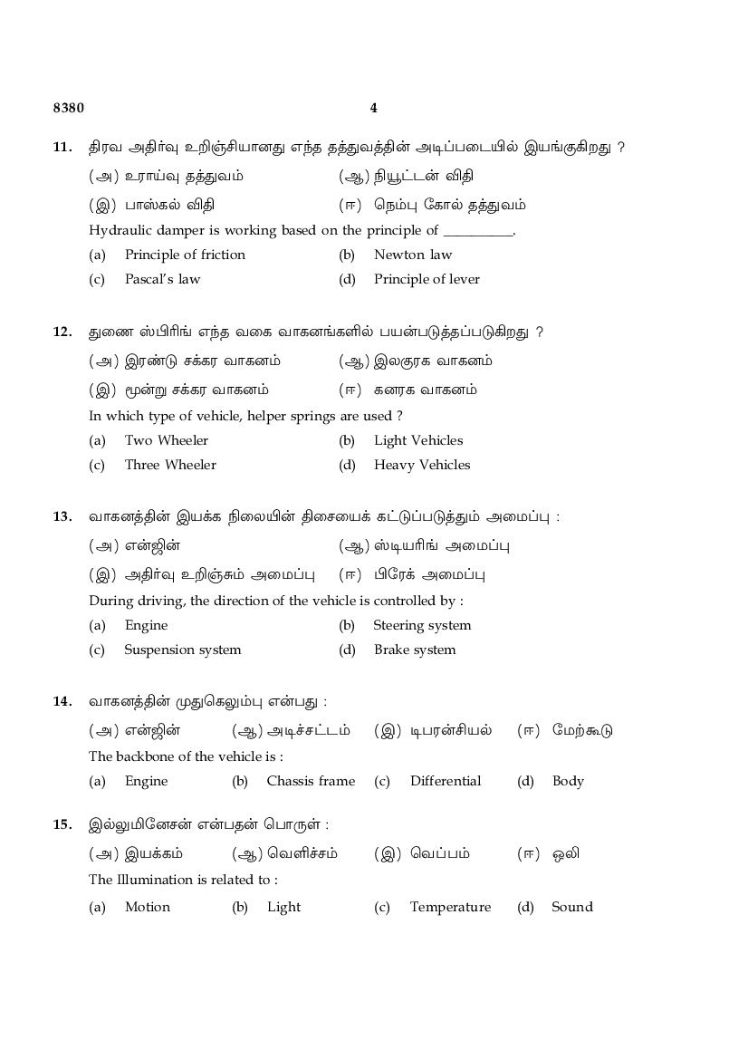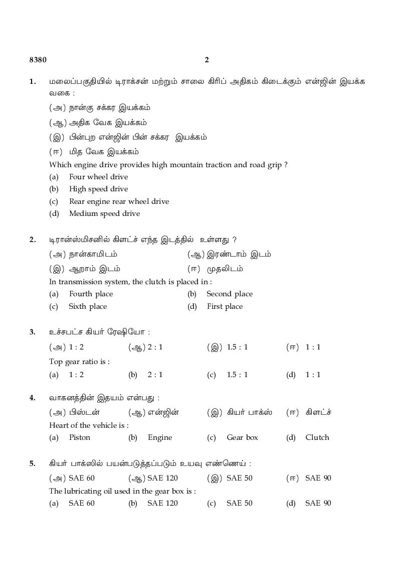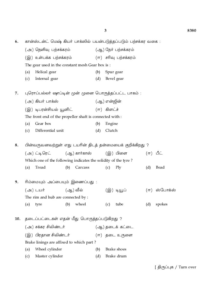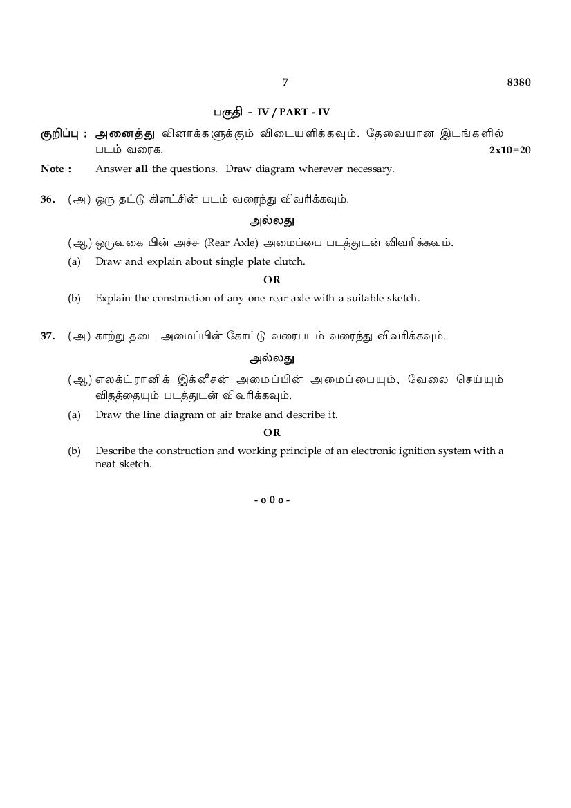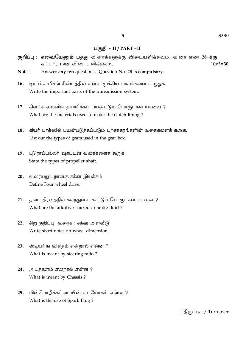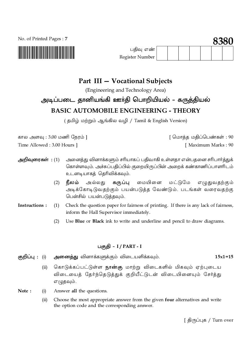 While you can easily download the TN 12th Basic Automobile Engineering previous year question paper from link above. Similarly you can study the complete Basic Automobile Engineering question paper here also. The entire HSE (+2) question paper is as follows.