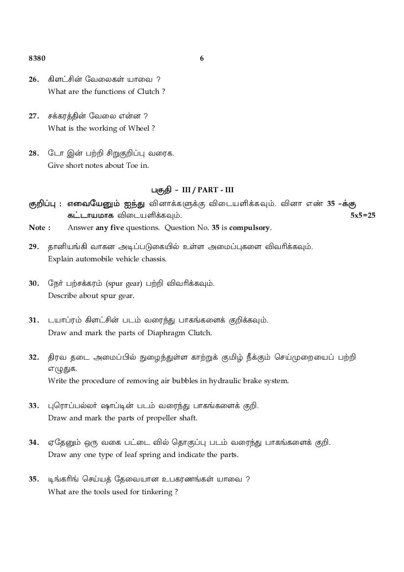 | Educational Resource Here | Tamil Nadu Board Previous Year Question Paper of Class 12 Basic Automobile Engineering |