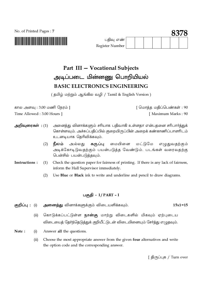 | Educational Resource Here | Tamil Nadu Board Previous Year Question Paper of Class 12 Basic Electronics Engineering |