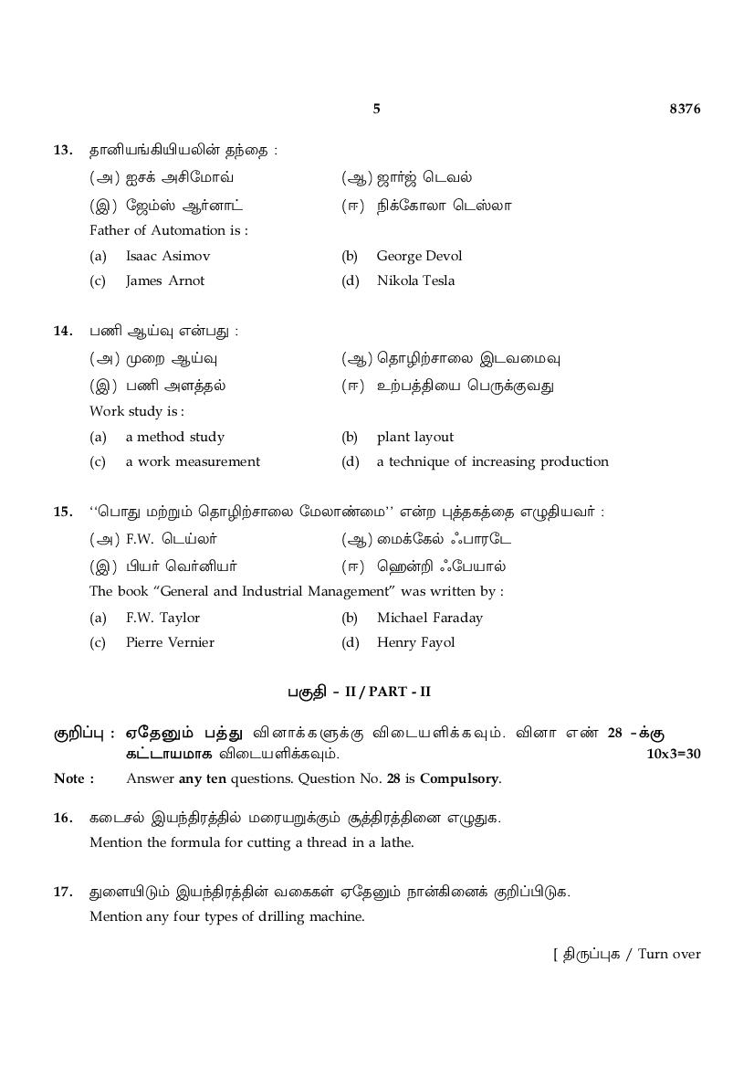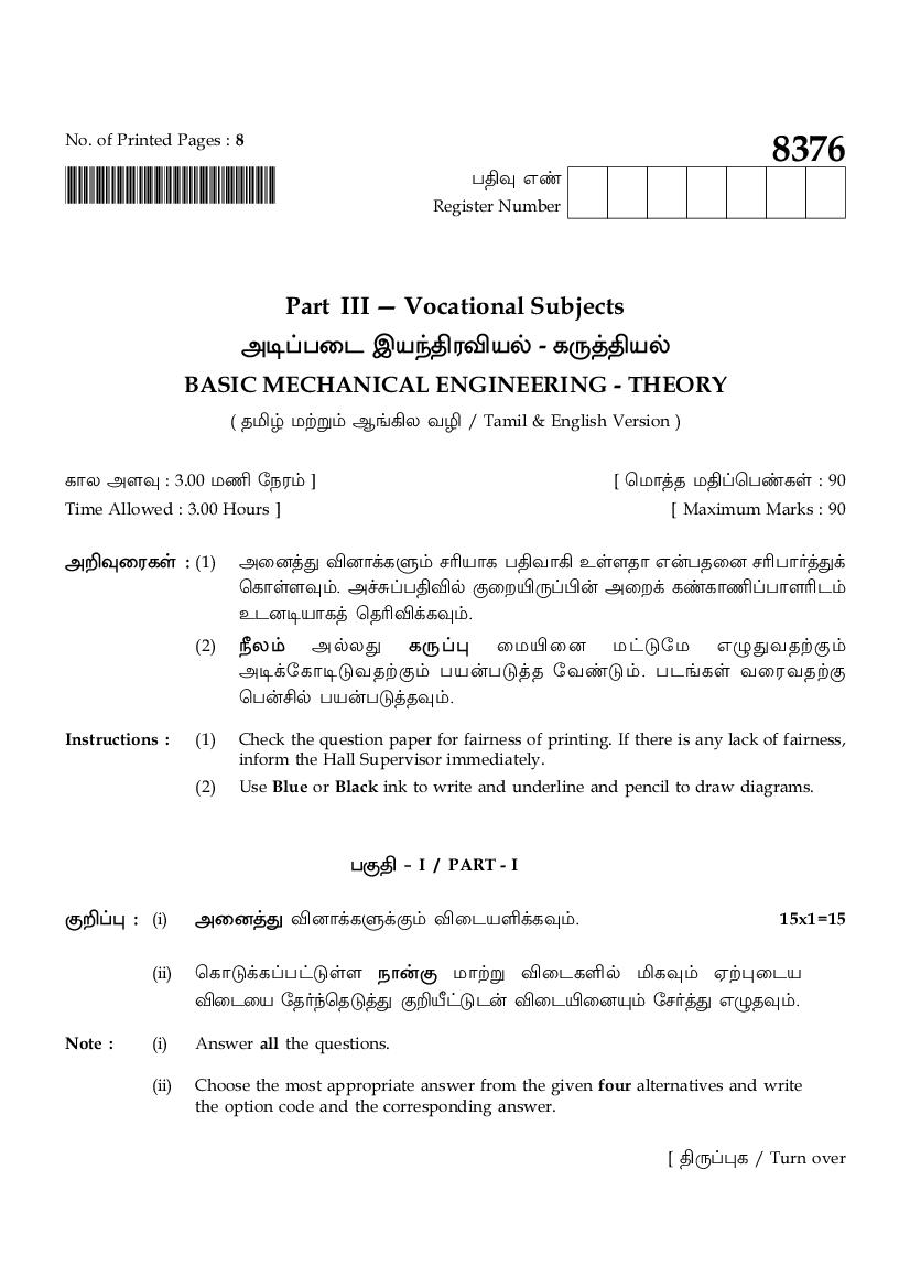| Educational Resource Here | Tamil Nadu Board Previous Year Question Paper of Class 12 Basic Mechanical Engineering |
