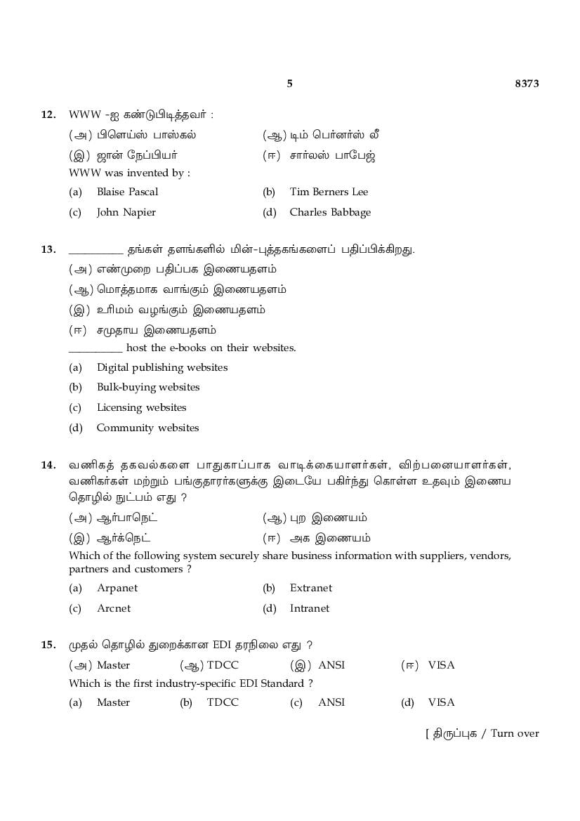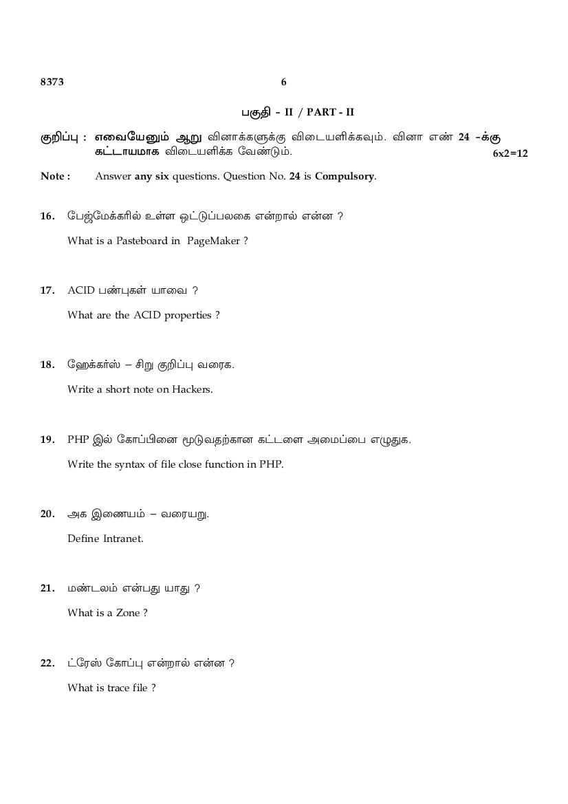 | Educational Resource Here | Tamil Nadu Board Previous Year Question Paper of Class 12 Computer Application |