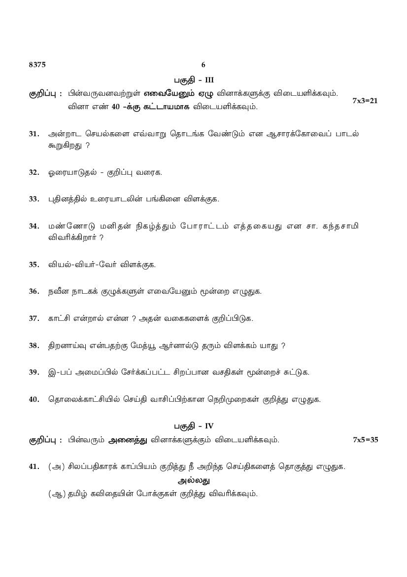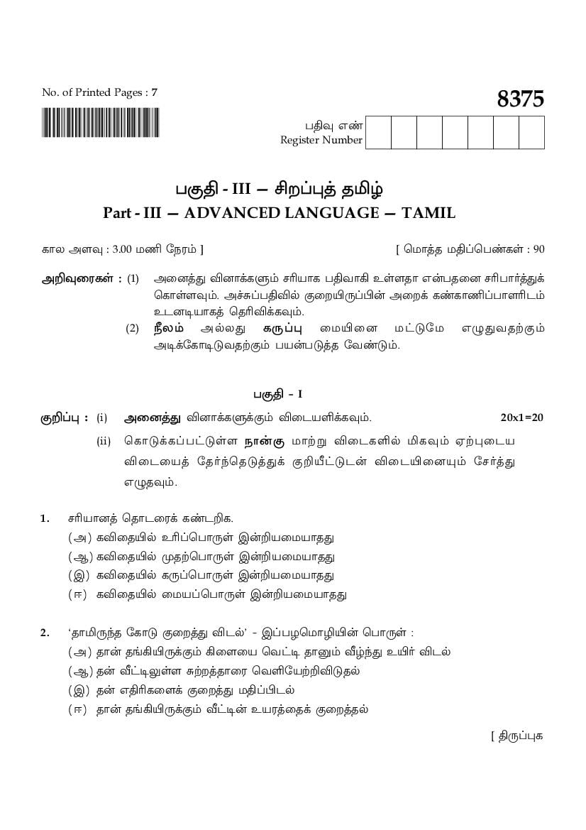 The TN Board Previous Year Question Paper for HSE (+2) (Class 12) Tamil Advanced is as follows.