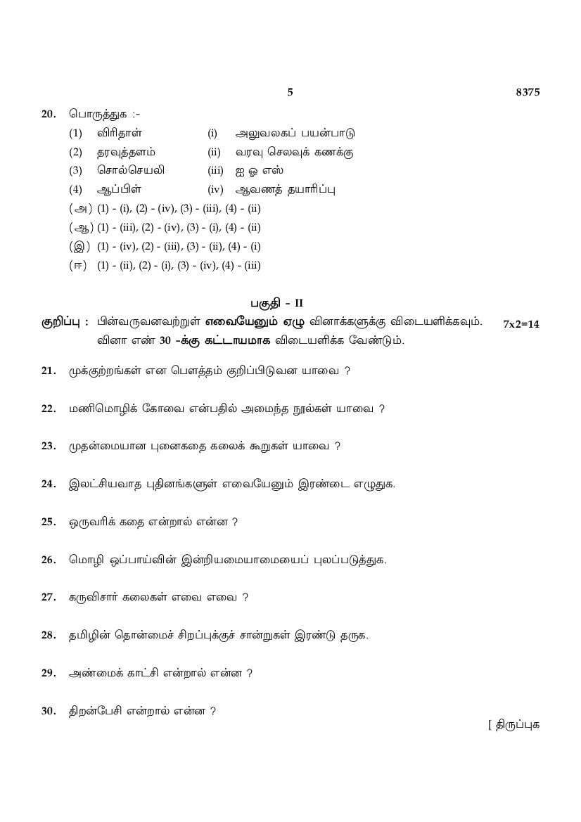 Tamil Nadu Board Previous Year Question Papers