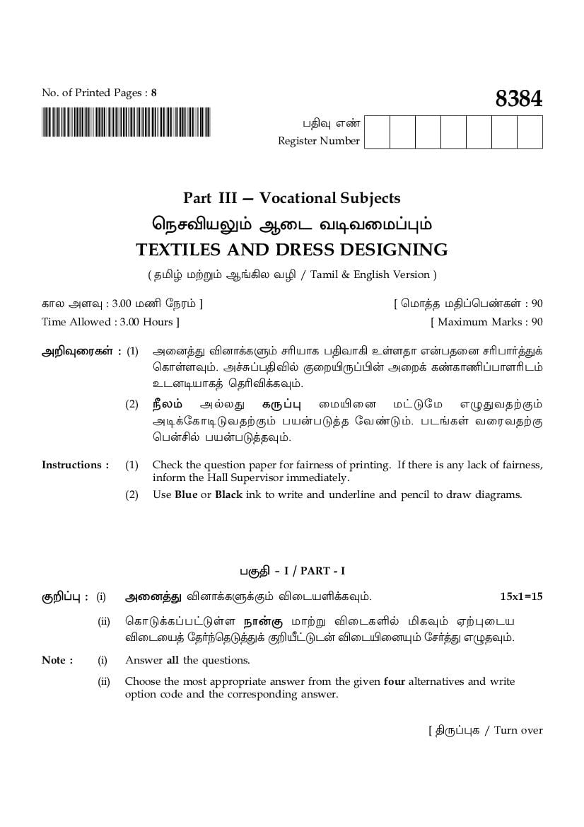TN 12th Question Paper 2025 Textiles and Dress Designing View Download