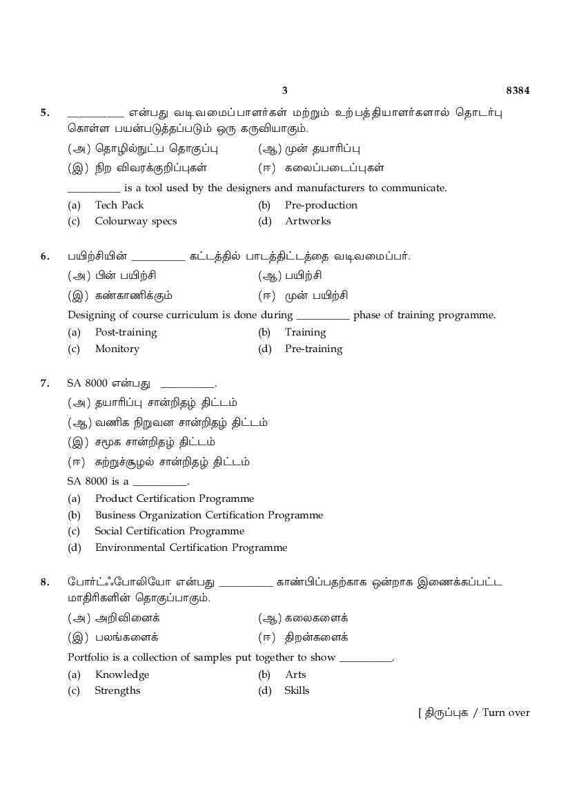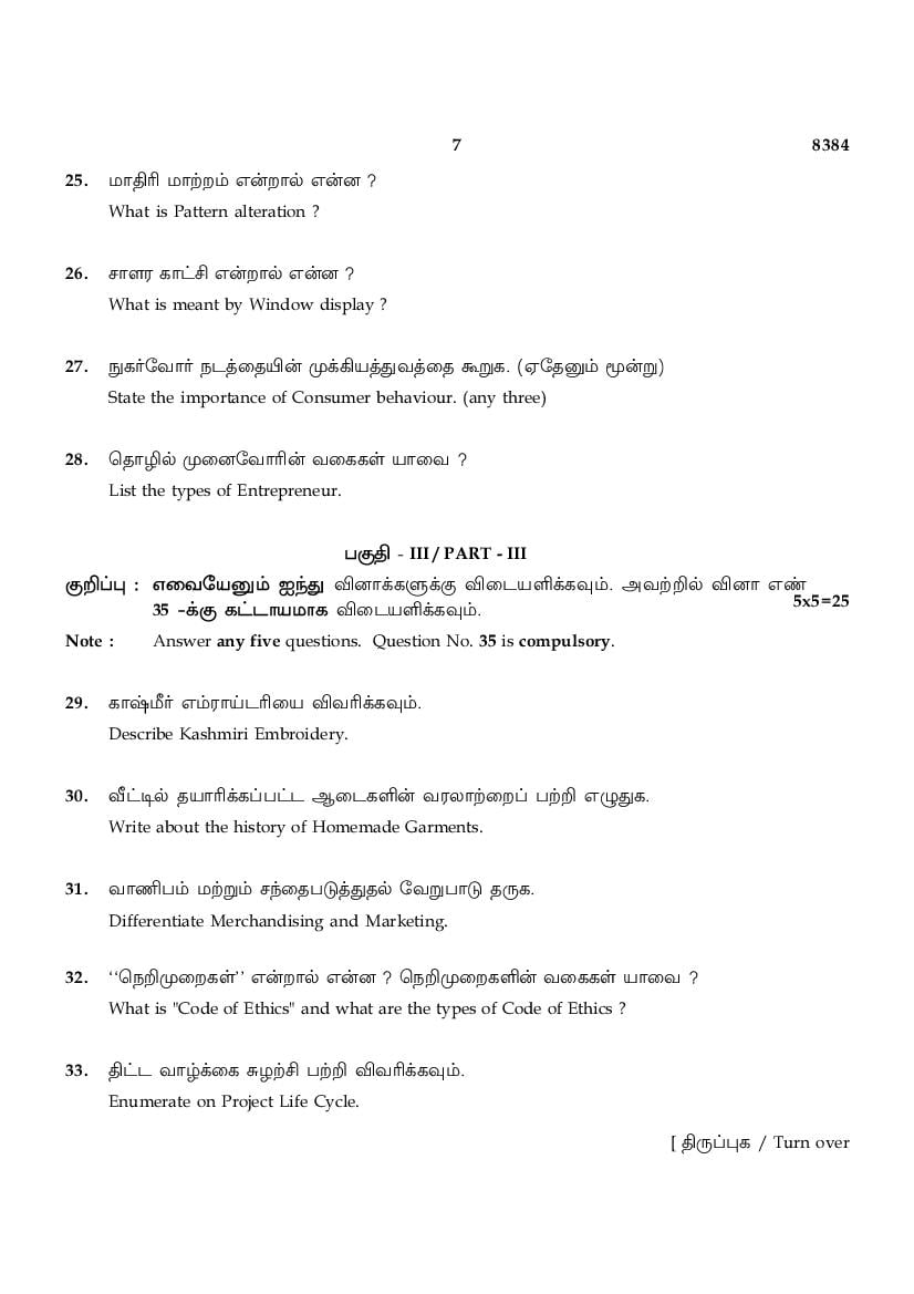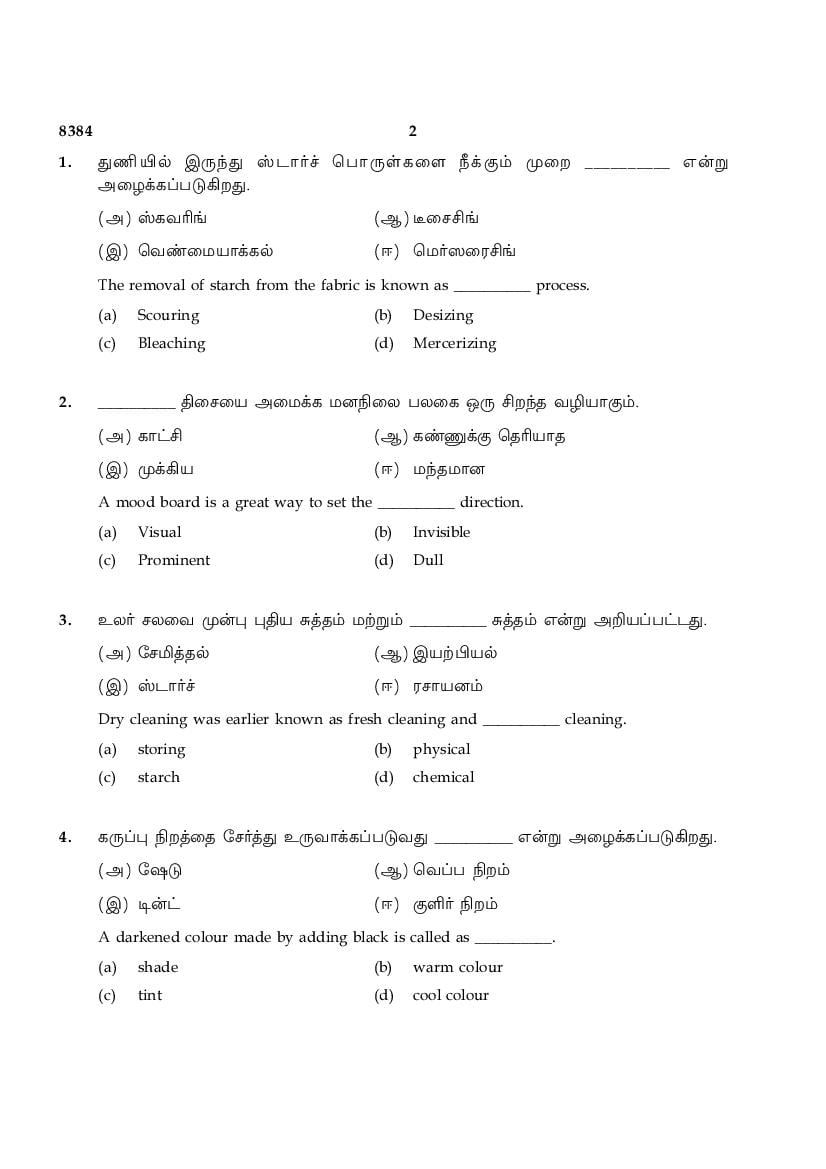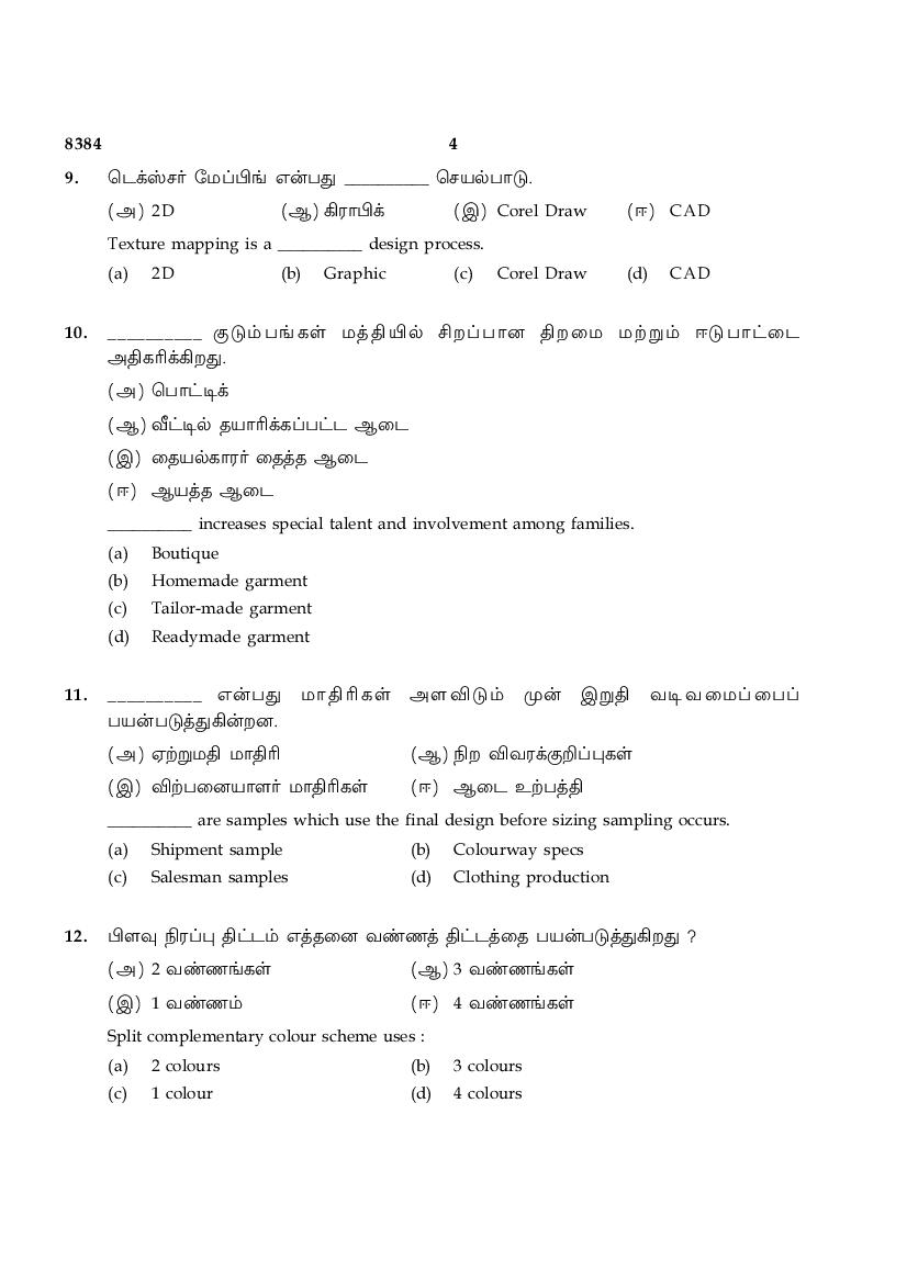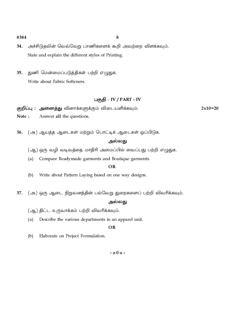 Educational Resource HereTamil Nadu Board Previous Year Question Paper of Class 12 Textile & Dress Designing