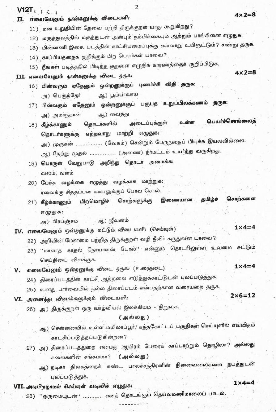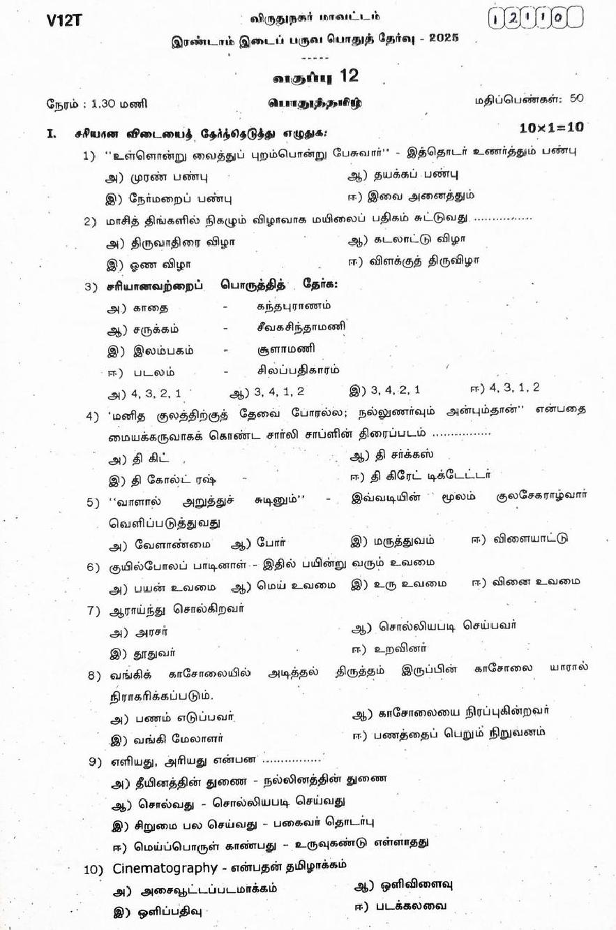 The question paper of Tamil Nadu state Second mid term examinations 2025-26 of standard 12th for Tamil subject is as follows.